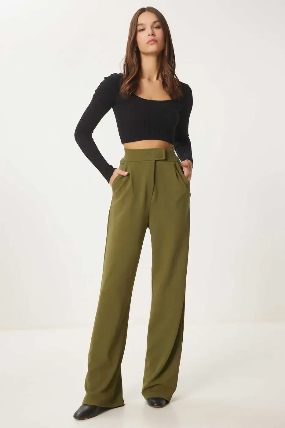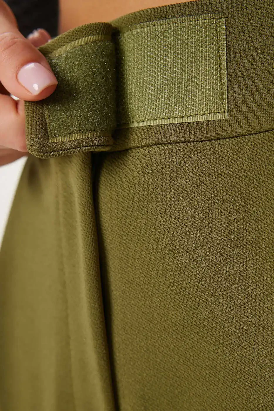 Meet the Women's Khaki Hook and Loop Closure Comfortable Woven Trousers RV00150, combining comfort and style! These trousers are perfect for everyday wear or special occasions. Their khaki color and stylish design will make them a staple in your wardrobe. Made from high-quality 80% Polyester and 20% Elastane blend fabric, these trousers are both durable and incredibly comfortable. The zipper and hook and loop closure system allows for easy on and off. Side pockets allow you to safely carry small items. The front pleat detail adds a touch of elegance. The relaxed fit allows you to wear them comfortably all day long without restricting your movement. This product is shipped by Trendyol, and a maximum of 10 items can be ordered. Orders exceeding 10 items may be cancelled by Trendyol. You can shop with peace of mind thanks to the 15-day free return option. The product length is 114 cm. Slight color variations may occur due to lighting differences in studio shots. Model measurements: Height: 1.72 cm, Bust: 83 cm, Waist: 58 cm, Hips: 87 cm. Order now to take advantage of the campaign price! Over 50 items are in stock, but hurry because stock is limited! Products sold by multiple sellers are ranked according to factors such as price, seller rating, delivery status, promotions, shipping costs, and fast delivery. Different limits may apply for corporate orders.