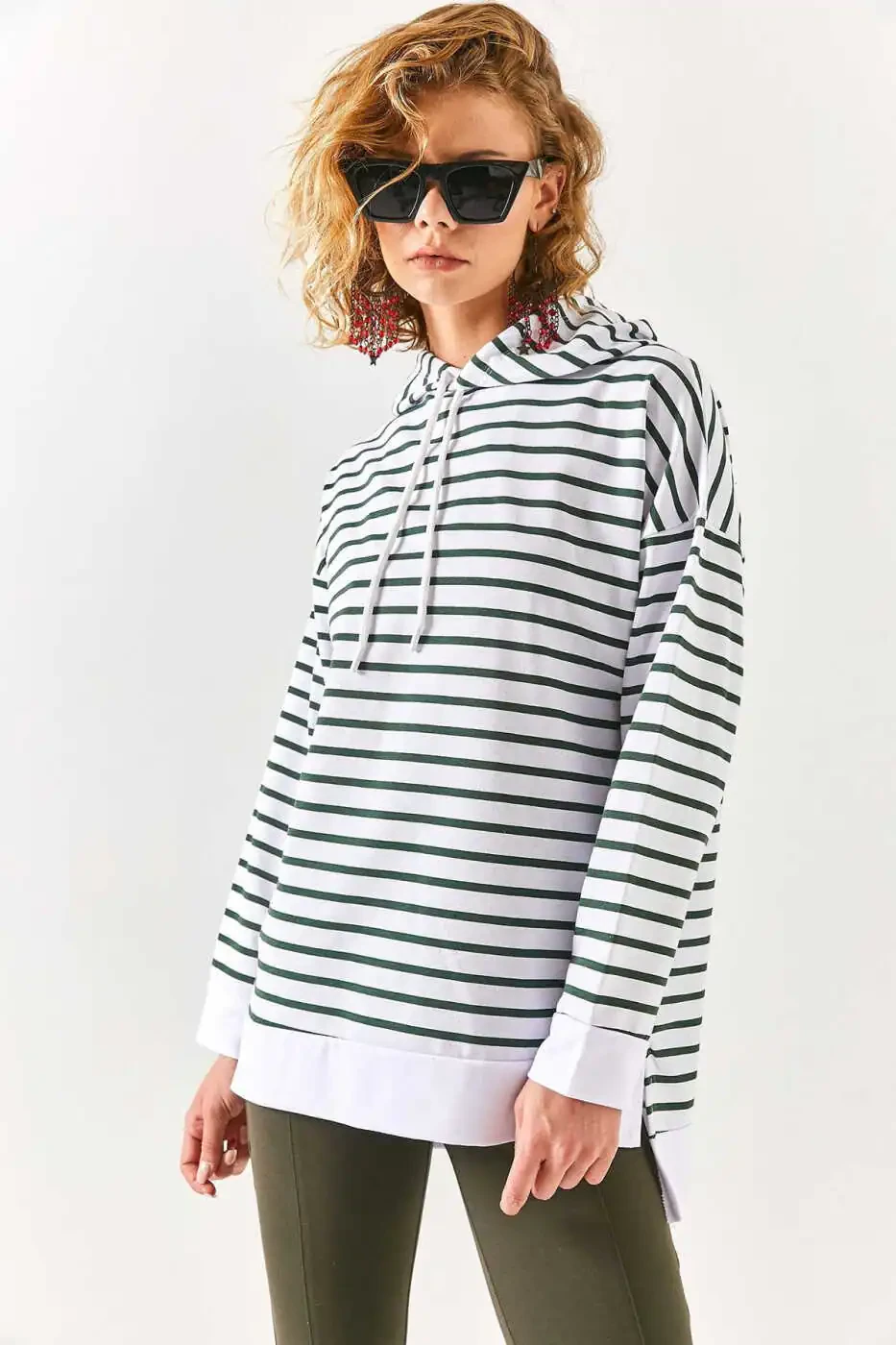 Women's Sweatshirt, Khaki Sweatshirt, White Sweatshirt, Striped Sweatshirt, Side Slit Sweatshirt