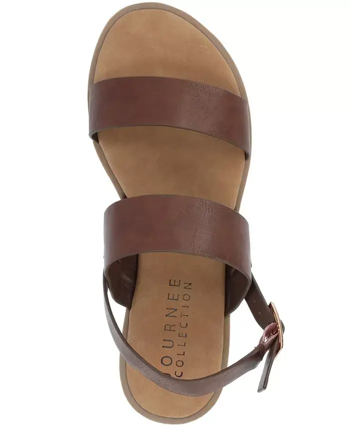 Comfortable SandalsEasy to wearGreat for everyday wearPerfect for summerDouble StrapFlat SandalOpen ToeSlip-onFaux LeatherImportedManmade SoleWipe Clean