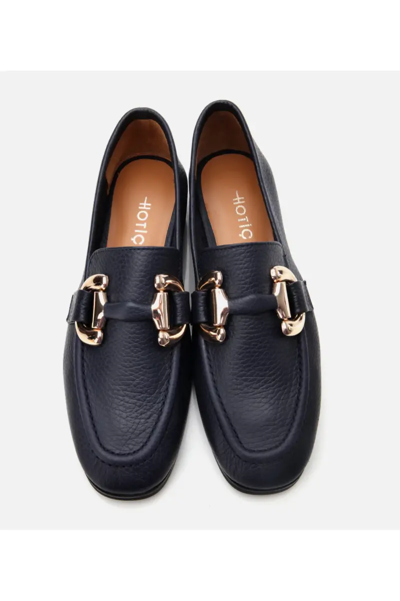 Women's Leather Navy Buckle Daily Loafer-NAVY