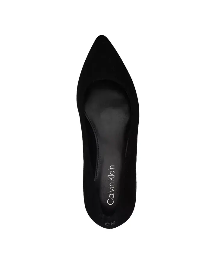Amp up your style in the Calvin Klein Lenott pumps, featuring a block heel, pointy toe and slip-on silhouette. The Lenott offers a clean and crisp finish to your everyday look. Founded in New York in 1968, the brand elevates everyday essentials to globally iconic status. Pointy toe Slip-on closure 1.97" Block heel Suede or Leather or Man Made upper; Man Made lining and sole Spot clean Imported