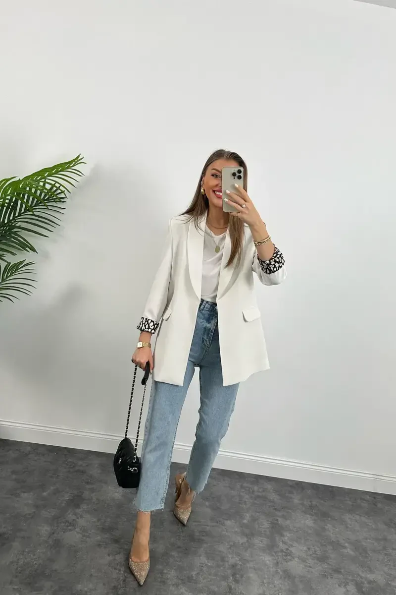 This leopard print blazer jacket, which combines elegance and style, will be an indispensable part of your wardrobe. The elegant leopard print creates an eye-catching look in any environment, while its lined structure will keep you warm even in cold weather.