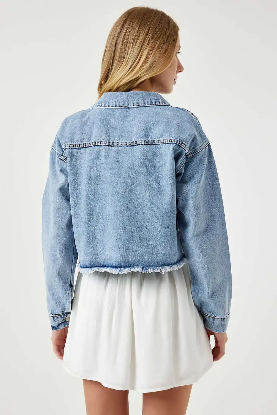 Combining elegance and comfort, the Women's Light Blue Tassel Detailed Denim Crop Jacket RV00159 is set to become one of your wardrobe's indispensable pieces! Timeless denim jackets continue to be trendy every season, and this jacket makes a difference with a modern touch. The light blue color and tassel details add an energetic and youthful air to the jacket, while the crop cut creates a modern and stylish silhouette. You can create different styles by combining this jacket with jeans, skirts, dresses and even shorts. This versatile piece, which you can easily use both in daily life and on special occasions, will give you a cool and stylish look. Thanks to its 100% cotton fabric, the jacket has a breathable structure and offers a comfortable experience throughout the day. The button closure system and double pocket detail offer both practicality and elegance. An ideal choice for mid-season transitions, this jacket is thick enough to keep you warm in cool weather, yet light enough not to restrict your freedom of movement. Its light blue color creates a vibrant and fresh look in spring and summer, while in autumn and winter it will be the perfect complement to your dark-colored outfits. Appealing to all age groups, this jacket is a timeless piece that will keep its place in your wardrobe for many years.