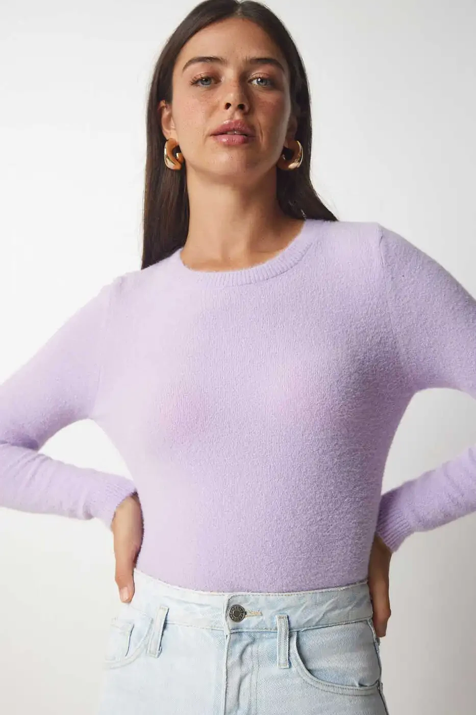 Women's sweater, lilac sweater, bearded knit, basic sweater, knitted sweater, winter sweater, comfortable sweater, stylish sweater, women's clothing, knitwear models