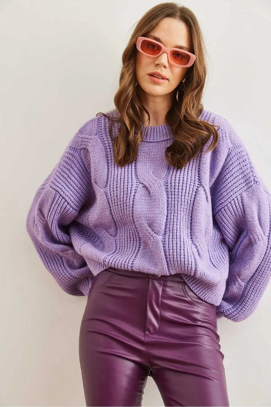 Women's Lilac Chunky Cable Knit Sweater | 100% Acrylic | Trendyol