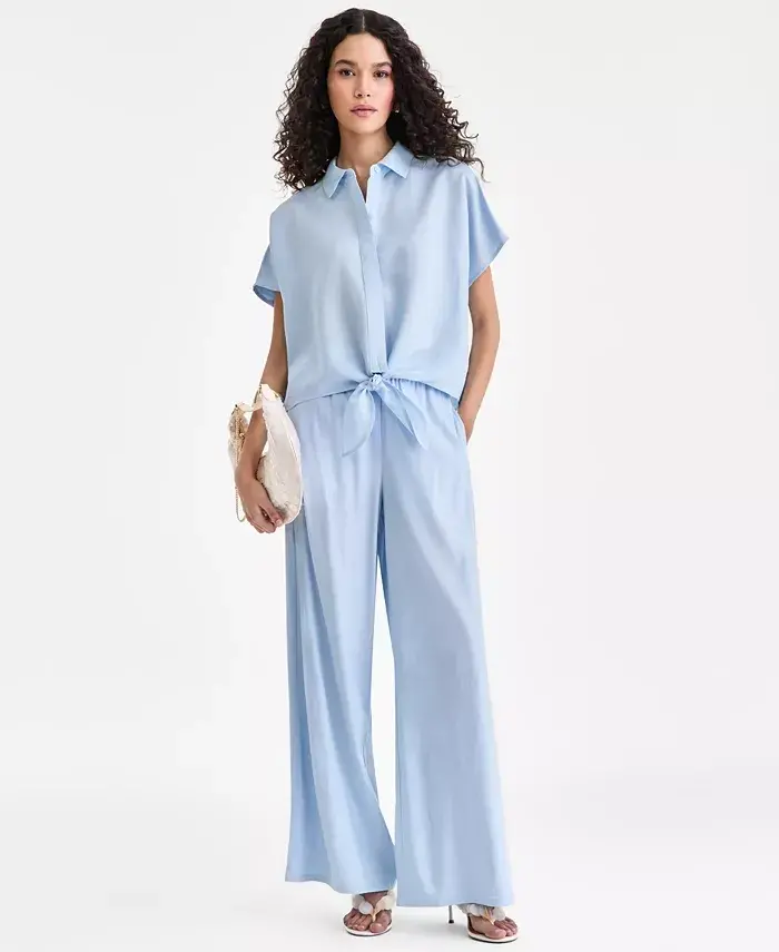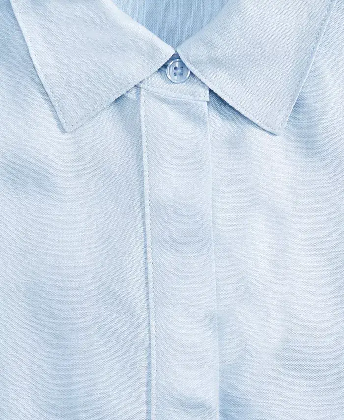 Women's Linen-Blend Tie-Front Blouse, Exclusively at Modazone - Bliss Blue