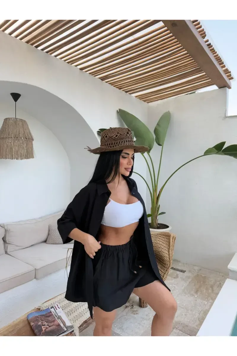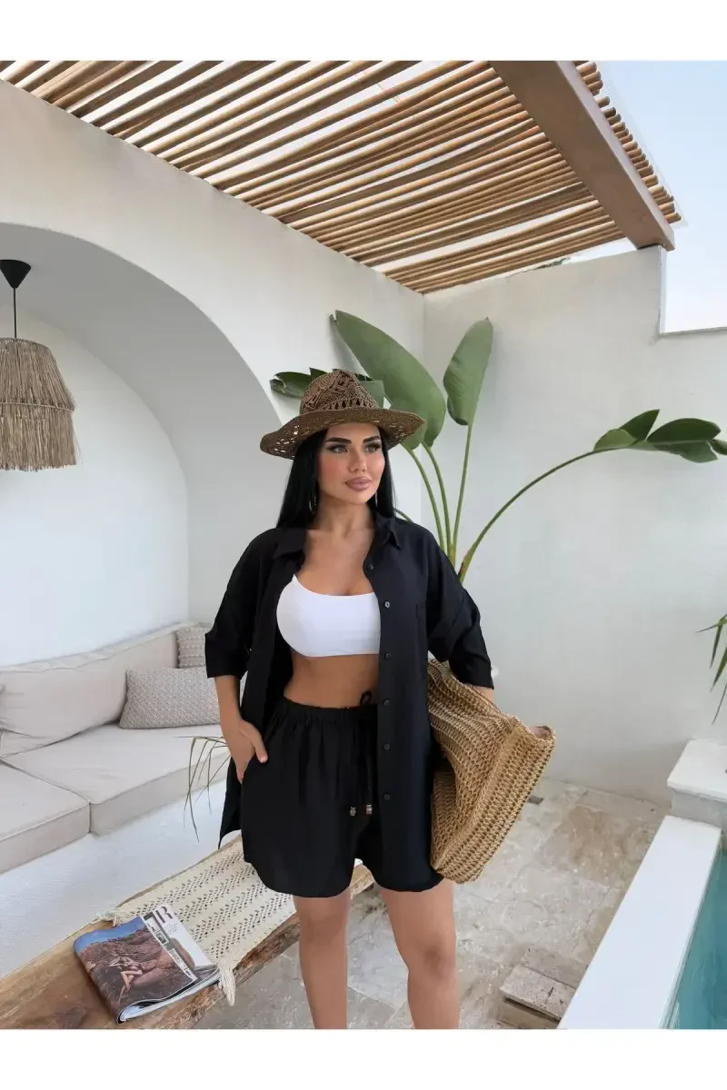 With its combination of comfort and style, the shirt shorts set is the perfect option for everyday use. You can achieve a stylish and comfortable look anywhere from your daily activities to meeting friends. On summer evenings, you can complete your outfit with an accessory for a more elegant look.