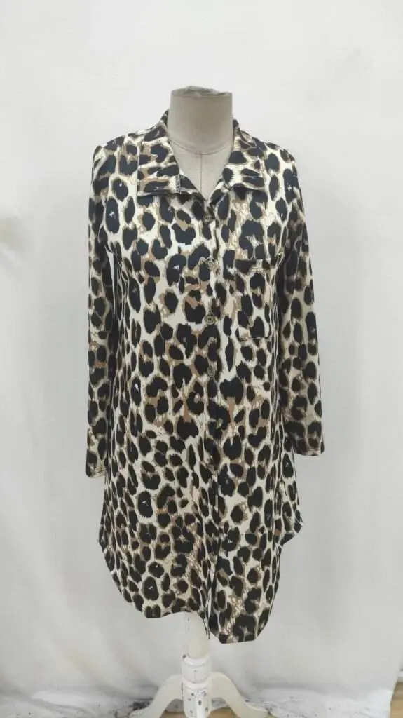 Add a wild touch to your style with the Women's Long Sleeve Collared Button-Down Leopard Print Modal Midi Dress! This eye-catching dress is a candidate to be an indispensable part of your wardrobe, offering both a stylish and comfortable look. Combining leopard print, feminine details and a comfortable cut, this midi-length dress will accompany you in every environment, from your special days to your daily combinations.The button-down design of the dress provides ease of use and also allows you to create different combinations. You can either close all the buttons for a classic look, or create a more comfortable and casual style by opening a few buttons. The collared design adds a sophisticated touch to the dress, while the long sleeves allow you to use it comfortably in cool weather.The soft texture of the modal fabric provides comfort all day long while ensuring that the dress fits perfectly on you. The midi-length skirt cut creates an elegant silhouette without restricting your freedom of movement. Leopard print represents a bold and assertive style, and when combined with the right accessories, it will take your elegance to the next level.You can combine this dress with high heels and attend a special invitation, or you can catch a daily elegance with flats or sandals. You can also wear it in different seasons by completing it with a jacket or cardigan. The Women's Long Sleeve Collared Button-Down Leopard Print Modal Midi Dress is a must-have piece in the wardrobe of stylish women.Model Measurements: Height: 165 cm, Weight: 55 kg, Bust: 90 cm, Waist: 72 cm, Hips: 100 cm. The product on the model is size M/38. This information will help you choose the right size. By choosing the one that suits your body best, you can ensure that the dress fits perfectly on you.Remember, style is not only about clothes, but also about your attitude. When you wear this dress, your self-confidence will increase and you will attract attention in every environment you enter. With the energy of leopard print, you can make your day more enjoyable and stylish.