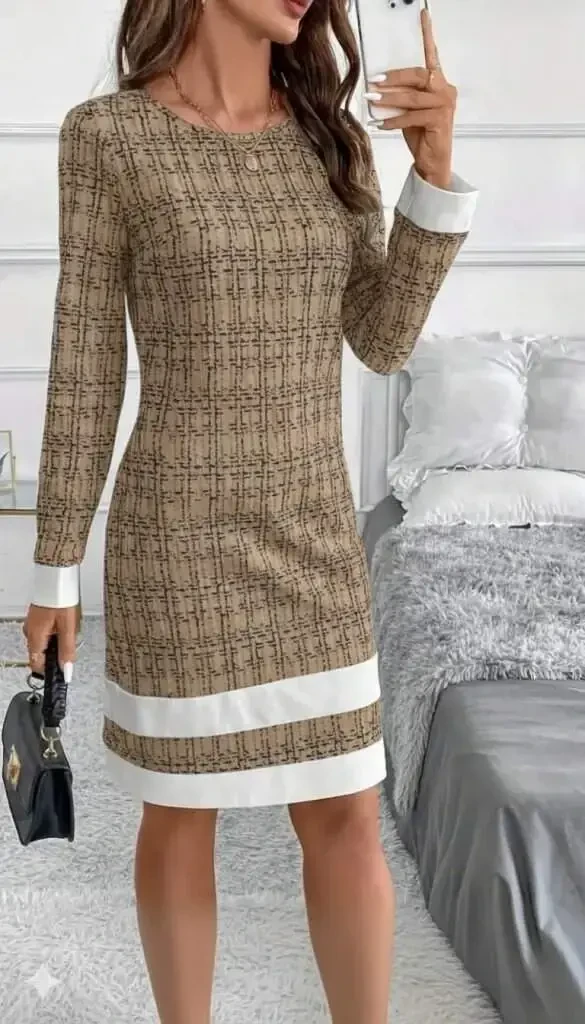 Experience elegance and comfort together with the Women's Long Sleeve Round Neck Mini Woven Dress with Hem Stripe Detail. This special design dress will be an indispensable part of your wardrobe with its modern woven fabric and eye-catching details. Ideal for daily use, this mini dress also allows you to show off your elegance at special events. Thanks to its long-sleeved design, it can be easily preferred in cool weather, while it offers an elegant look with its round neck cut. The stripe detail on the hem adds movement and originality to the dress, helping you reflect your style. The M/38 size on the model is an ideal option for a person with a height of 165 cm, a weight of 55 kg, a chest of 90 cm, a waist of 72 cm, and a hip measurement of 100 cm. This dress is designed to fit every body type and offers comfortable use all day long. Thanks to the quality of its fabric, it is long-lasting and does not wear out easily. Offered in different color and pattern options, you can choose this dress in the way that best suits your style and create your own style. Whether you create a daily combination with sneakers or attend a stylish invitation with heels, this dress will accompany you in any case. Be ready to attract attention in every environment with this special design dress that should be in your wardrobe. While providing a young and dynamic look with its mini length, you do not compromise on your elegance with its long-sleeved design. The stripe detail on the hem adds a different feel to the dress and allows you to stand out from the others. This dress is not just a garment, but also a style statement. Choose this dress to feel special and reflect your style. This versatile dress, which can be worn in every season, will be one of the most loved pieces of your wardrobe.