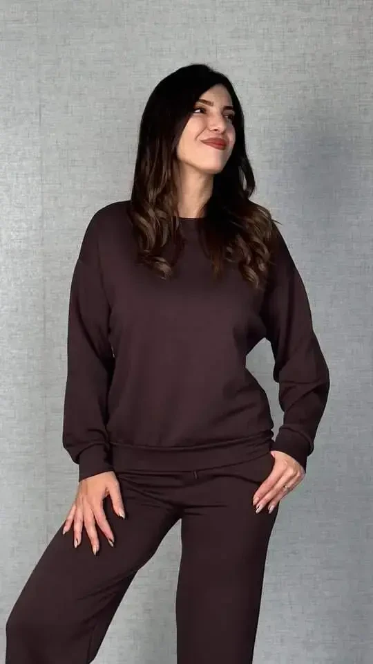 Experience elegance and comfort with the Women's Long Sleeve Crew Neck Viscose Double Yarn Blouse and Pants Set. This set, which you can easily use at any time of the day, gently touches your skin thanks to the soft texture of viscose fabric. The double yarn structure offers a thickness suitable for the season, keeping you warm and preventing perspiration. The modern cut of the crew neck blouse provides an elegant look, while the long sleeves make it an ideal choice for cool weather. The pants set allows you to create both sporty and stylish combinations. You can wear this set whether you are relaxing at home, meeting with friends, or running your daily errands. The M/38 size on the model is designed to fit different body types. This set, which looks perfect on a model with a height of 165 cm, weight of 55 kg, chest of 90 cm, waist of 72 cm, and hip of 100 cm, will display the same elegance on you. This two-piece set, which will become an indispensable part of your wardrobe, offers all-day comfort with the natural texture and comfortable cut of viscose. The harmony of the double yarn blouse and pants gives you effortless elegance, while the crew neck detail adds a modern touch. The long-sleeved design allows you to use it comfortably in all seasons. The pants set feature is a versatile option that you can combine with both sneakers and stylish flats. This set is a must-have piece in the wardrobe of stylish women. In addition to daily use, you can achieve a striking look by combining it with stylish accessories and the right shoes on special occasions. The lightness and comfort of viscose fabric offer freedom of movement throughout the day, while the double yarn structure guarantees durability. With the Women's Long Sleeve Crew Neck Viscose Double Yarn Blouse and Pants Set, you can stay stylish without sacrificing your comfort and have a combination that will confidently accompany you in any environment. Remember, this set is not just clothing, it is also a lifestyle. Experience this set that combines elegance, comfort and originality and feel the difference.