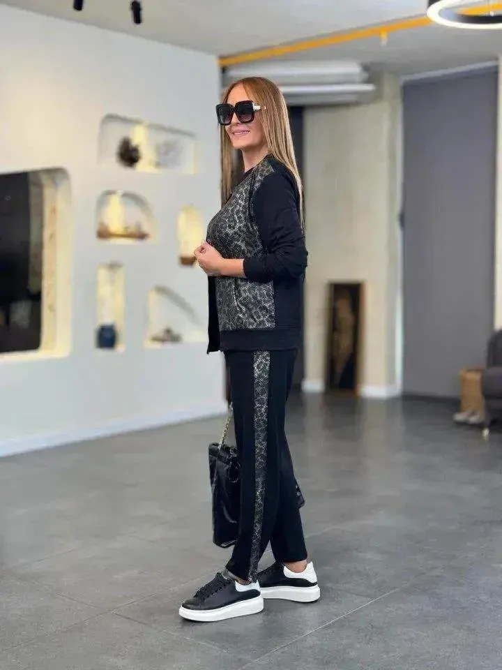 Meet the Women's Long Sleeve Front Zippered Leopard Print Viscose Double Yarn Blouse and Pants Two-Piece Set, which will be an indispensable part of your wardrobe and offers both a stylish and comfortable option! This unique design has been carefully prepared to suit the dynamic lifestyle of the modern woman. The timeless appeal of the leopard pattern, the soft touch of viscose fabric and the comfort of the double yarn structure combine to ensure you are comfortable all day long without sacrificing your elegance. The front zipper of the blouse offers ease of wear and adds a modern touch to your style. The zipper detail allows you to use the blouse in different combinations, allowing you to easily switch from a sporty look to a more stylish style. The long-sleeved design keeps you warm in cool weather while maintaining your elegance. The trousers are designed to be in perfect harmony with the blouse. The flowing structure of the viscose fabric gives you a pleasant look and does not restrict your freedom of movement. Thanks to its double yarn structure, the trousers are both durable and comfortable. The leopard pattern adds dynamism to the design of the trousers, allowing you to achieve a look away from the ordinary. This two-piece set is an ideal option for both daily use and special occasions. Whether you are in meetings, meeting friends, shopping or relaxing at home, it always makes you feel stylish and comfortable. You can reflect your own style by combining it with different accessories and shoes. Model Measurements: Height: 165 cm, Weight: 55 kg, Bust: 90 cm, Waist: 72 cm, Hips: 100 cm. The product on the model is size M/38. This information will help you choose the correct size. By taking your own measurements into account, you can choose the size that fits you perfectly and reflects you in the best way. The Women's Long Sleeve Front Zippered Leopard Print Viscose Double Yarn Blouse and Pants Two-Piece Set is not just a piece of clothing, but also a lifestyle. It is designed for self-confident, stylish and comfort-loving women. When you wear this suit, you will feel both stylish and free. Don't miss this set that is a candidate to be the most loved piece of your wardrobe!