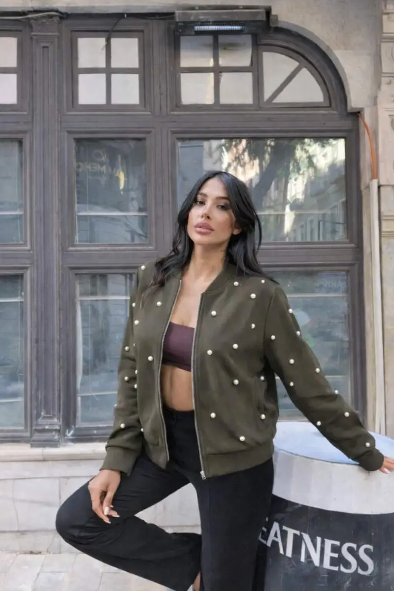 Combining a modern and stylish look with comfort, the Women's Long Sleeve Front Zippered Pearl-Embellished Short Modal Jacket is a candidate to become an indispensable piece in your wardrobe. Thanks to the soft texture of the modal fabric, it leaves a breathable feeling of freshness on your skin all day long, while its design perfectly complements both sporty and classic outfits. The elegant pearl details on it elevate the aesthetic of your jacket, adding a feminine and sophisticated air. Offering practical use with its front zippered structure, this jacket highlights your body lines gracefully with its modern cut, while also having a flexible structure that allows you to move freely. This piece, which you can combine with your jeans in daily life or with stylish skirts for special occasions, draws attention with its versatility. It is an option that will be in your wardrobe for many years with its natural content that is skin-friendly, long-lasting, and high-quality texture. Combining aesthetics with functionality, this short jacket is specially designed for women who love minimal design details. This design, which fits your body perfectly with its drape on the model and reflects your style with its modern lines, opens the doors to timeless fashion. Being an ideal choice for those who do not want to compromise on elegance and want to feel comfortable all day long, this product will help you strengthen your style with its structure suitable for every season.