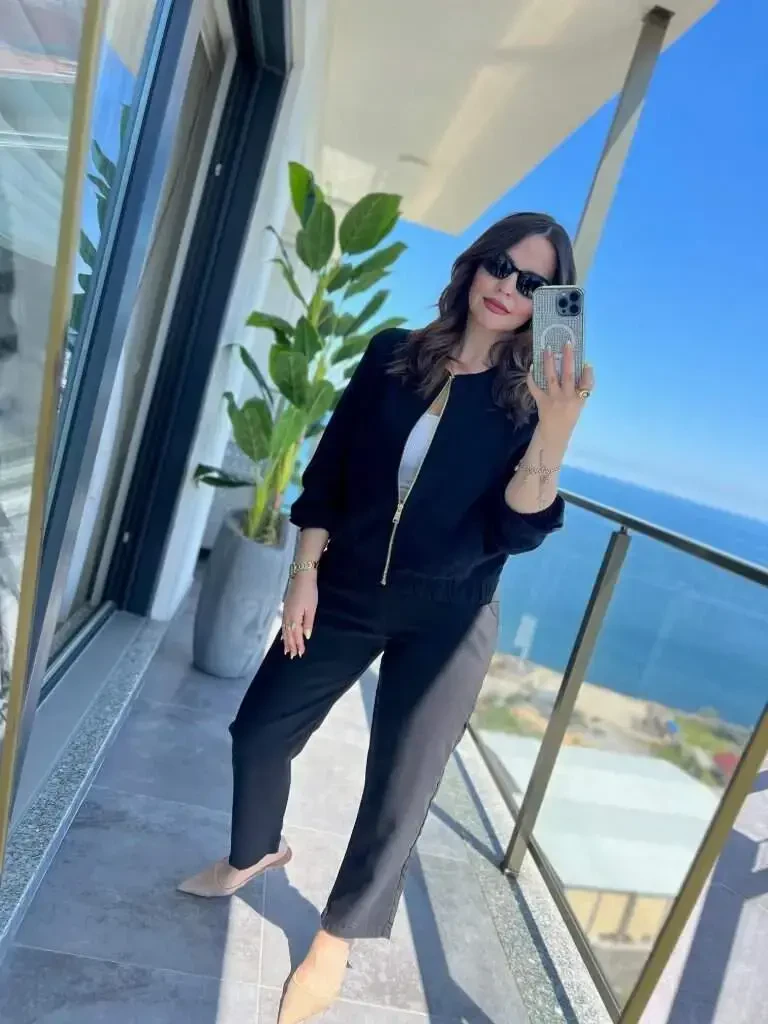 Experience elegance and comfort together with the Women's Long Sleeve Front Zippered Modal Jacket and Pants Two-Piece Set. This special design set is carefully crafted to suit the dynamic lifestyle of the modern woman. This set, which you can easily prefer for daily use as well as special occasions, will be one of the indispensable pieces of your wardrobe. Both the jacket and trousers of the set are made of high quality modal fabric. Modal is a fabric known for its soft texture and breathable structure, obtained from natural sources. In this way, it offers comfortable use throughout the day. The jacket can be easily put on and taken off thanks to its front zippered design, while providing a modern and stylish look. Its long sleeves keep you warm in cool weather and prevent you from sacrificing your elegance. The trousers do not restrict your freedom of movement with their comfortable cut and elastic waistband. You can stay stylish without sacrificing your comfort even when you need to be active during the day. Model dimensions: Height: 165, Weight: 55, Chest: 90, Waist: 72, Hips: 100 and the product on the model is size M/38. This set is compatible with every body type with its different size options. By choosing the one that suits your size, you can achieve a perfect look on you. Whether you create a daily combination with sneakers or achieve a more stylish look with heels. This set can be easily combined with different accessories and shoes. This set, which is also very easy to care for, offers long-lasting use. By washing it on a delicate wash program, you can ensure that the fabric stays like the first day. Experience both comfort and elegance together with the Women's Long Sleeve Front Zippered Modal Jacket and Pants Two-Piece Set. This special design set is a candidate to be one of the most loved pieces of your wardrobe!