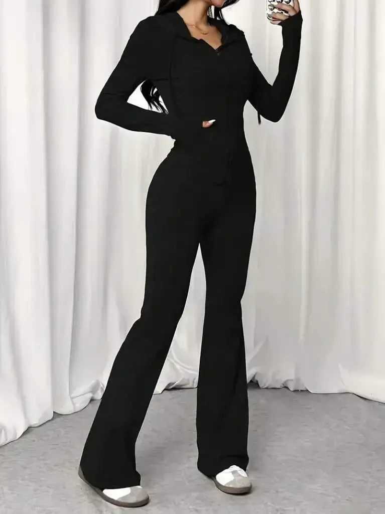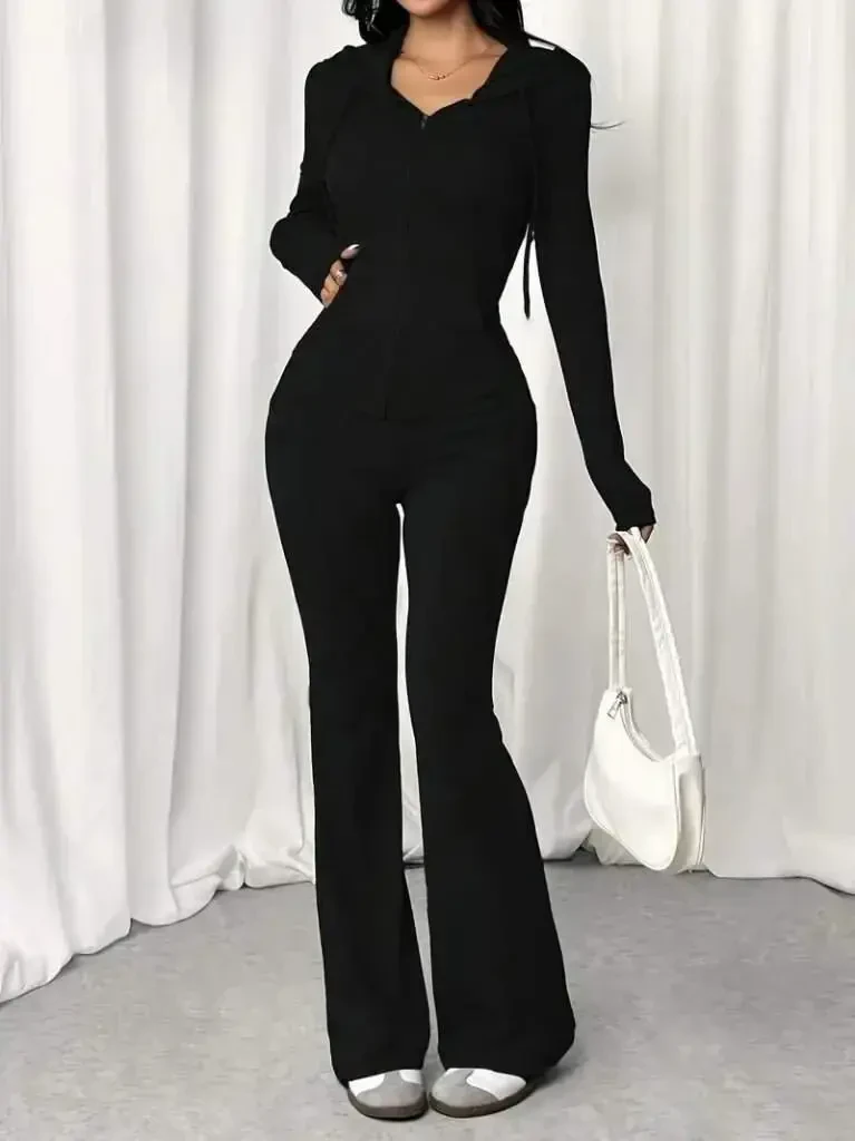 Experience elegance and comfort together with the Women's Long Sleeve Hooded Drawstring Front Zippered Viscose Two-Thread Blouse and Pants Two-Piece Set. This set, which will accompany you in every environment from your daily use to your special moments, will be an indispensable part of your wardrobe with its modern design and comfortable texture. The softness of the two-thread viscose fabric gently touches your skin, while the hooded blouse and comfortable-cut pants offer freedom of movement all day long. The zippered front blouse provides a sporty and dynamic look, while the drawstring details add a different dimension to your elegance. Thanks to its long-sleeved design, you can easily use it in cool weather. The comfortable cut of the trousers offers a comfortable wearing experience all day long, while allowing you to create a stylish combination in perfect harmony with the blouse. This set is ideal for creating a casual style with both sneakers and a more elegant look with heels. You can reflect your style by combining it with different accessories. Whether you are relaxing at home or meeting with friends, enjoy being stylish and comfortable at all times. Considering that the product on the model is size M/38 and the model's measurements are Height: 165, Kg: 55, Chest: 90, Waist: 72, Hips: 100, you can choose the one that best suits your size. Thanks to the natural structure of viscose fabric, your set will remain like the first day for a long time and will accompany you for many years. Discover this stylish and comfortable set now and bring a new breath to your wardrobe. A perfect choice to make yourself feel special! Remember, style is not just about what you wear, but also about how you wear it. This team offers you both.