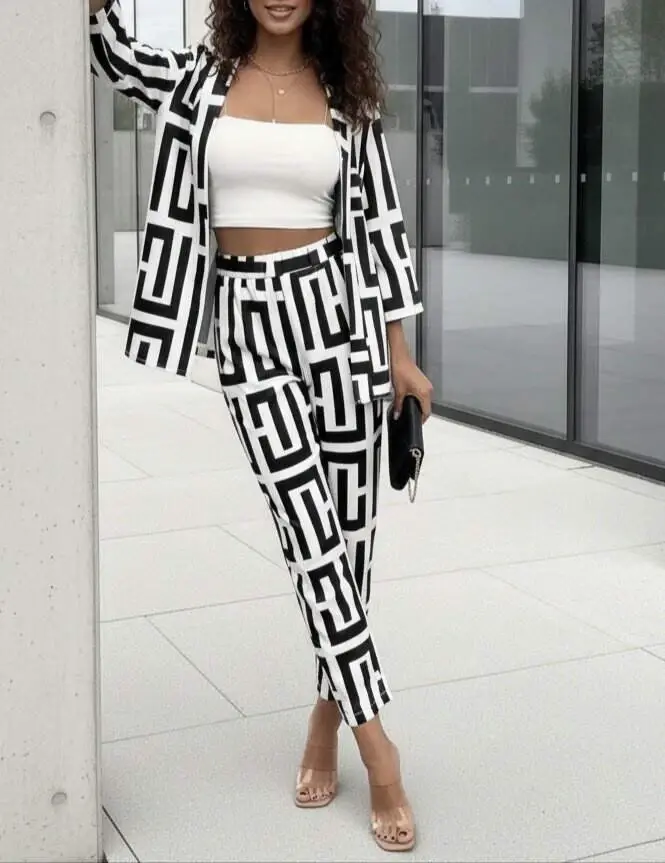 Experience elegance and comfort together with the Women's Long Sleeve Open Front Patterned Two-Thread Jacket and Pants Set. This special design will allow you to express your style both in daily use and on special occasions. The soft texture of the two-thread fabric offers comfort all day long, while the modern pattern and open-front jacket detail add a unique touch to the set. This versatile set, which you can use alone or in different combinations, will be an indispensable part of your wardrobe. The pants set offers both a stylish and practical option, while the long-sleeved jacket keeps you warm in cold weather. The M/38 size on the model represents the ideal cut and perfect fit. You can add a new breath to your style by trying this unique set. This set is an ideal choice for women who love comfort and do not want to compromise on elegance. This set, which can be worn in all seasons, is a candidate to be one of the most loved pieces in your wardrobe. This set, which you can especially prefer on travels, daily runs or meeting with friends, always gives you a stylish and well-groomed look. The pattern of the set is designed to adapt to any environment and can be easily combined with different accessories. The durability of the two-thread fabric offers long-lasting use, while the easy-to-iron feature saves you time. This set is not only stylish but also a practical option. Reflect your style and make a difference in any environment with the Women's Long Sleeve Open Front Patterned Two-Thread Jacket and Pants Set. This set is a special option that you can give as a gift to yourself and your loved ones. Remember, style is not only about clothes, but also about the confidence you have in yourself. When you wear this set, you will feel more confident and stylish.