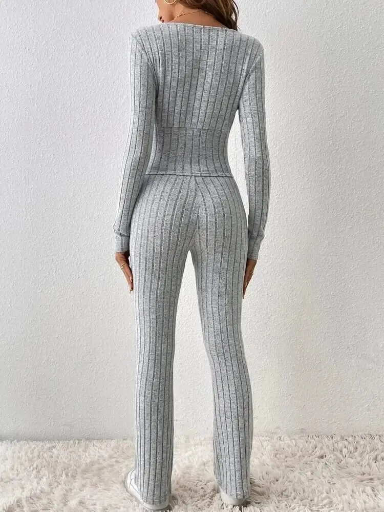 Experience both elegance and comfort with the Women's Long Sleeve Brushed Ribbed Knit Two-Piece Set. This special design set adds a modern touch to your daily style, while keeping you warm in cold weather thanks to its brushed interior. The elegant texture and flexible structure of the ribbed knit fabric fit your body perfectly, allowing you to move comfortably all day long. Whether you're relaxing at home, meeting up with friends, or on a weekend getaway, this two-piece set is the perfect choice to accompany you in any environment. The long-sleeved blouse, which is the top piece of the set, attracts attention with its simple and stylish design, while the bottom piece can be preferred as comfortable sweatpants or leggings. This combination allows you to achieve both a sporty and elegant look. Moreover, you can easily combine the different pieces of the set with other clothes in your wardrobe to create your own style. The Women's Long Sleeve Brushed Ribbed Knit Two-Piece Set is not only stylish and comfortable, but also offers a long-lasting use thanks to its high-quality material. The breathable structure of the fabric eliminates the problem of sweating throughout the day, allowing your skin to feel comfortable. This set can be a great gift option for yourself, as well as a stylish way to show your loved ones how much you care. Discover this two-piece set that will be an indispensable part of your wardrobe and experience this unique experience where comfort meets elegance. The flexible ribbed knit texture gently adapts to your body lines, while the brushed interior keeps you warm in cold weather. Whether you are spending a comfortable day at home or showing off a stylish look outside, this set will always be your best choice. Thanks to the color options, you can easily find the one that suits your style and create your own style by combining it with other pieces in your wardrobe. Remember, life is much more enjoyable when elegance and comfort come together. This set will be a favorite of your wardrobe for many years with its modern and timeless design. Order now and enjoy this unique experience!