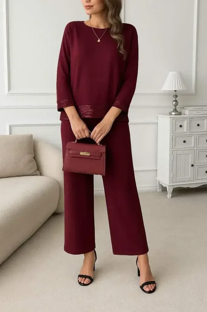 Women's Long Sleeve Crew Neck Sequin Viscose Double Thread Blouse and Pants Set is a special design that offers a modern and stylish look while prioritizing comfort. This eye-catching set is a perfect option for both daily use and your special occasions. The blouse's crew neck offers an elegant and simple elegance, while the long sleeve design makes it wearable in all seasons. The sequin details on it add a sophisticated touch to the outfit, creating a sparkling look. The soft texture of the viscose double thread fabric offers a comfortable wearing experience all day long. This fabric, which gently touches your skin, prevents sweating with its breathable structure and keeps you fresh all day long. The comfortable cut of the pants creates a stylish silhouette without restricting your freedom of movement. The harmonious design of the blouse and pants allows you to achieve effortless elegance. Whether you create a casual style with sneakers or achieve a more elegant look with heels, this set will accompany you in any environment. The quality of the fabric and the careful details of the workmanship offer a long-lasting use, while always keeping your elegance in the foreground. Enjoy both comfort and elegance with this special design set. Thanks to the breathable structure of the double thread viscose fabric, you can stay comfortable all day long without sweating. Sequin details reflect the light, adding movement and vibrancy to your outfit. Thanks to the different color options of the set, you can choose the one that best suits your style and create your own style. This set, which you can use either as a single piece or by combining it with different pieces, will be one of the most versatile pieces of your wardrobe. Attract attention in every environment with this special design set that offers elegance and comfort together. Suitable for both daily use and special occasions, this set will be the savior of your wardrobe. This set, which puts an end to the trouble of combining, will become one of the must-haves of your wardrobe. Whenever you want to feel special and stylish, you can add energy to your day by wearing this set. In addition, this set, which you can consider as a gift to your loved ones, will offer them both elegance and comfort together. This two-piece set is not just a piece of clothing, but also a lifestyle. This set, which is the choice of modern women who seek elegance and comfort together, will be one of the most valuable pieces of your wardrobe. Remember, being stylish is not only about clothes, but also about how you feel about yourself. This set will always make you feel good and will help you reflect your style in the best way.