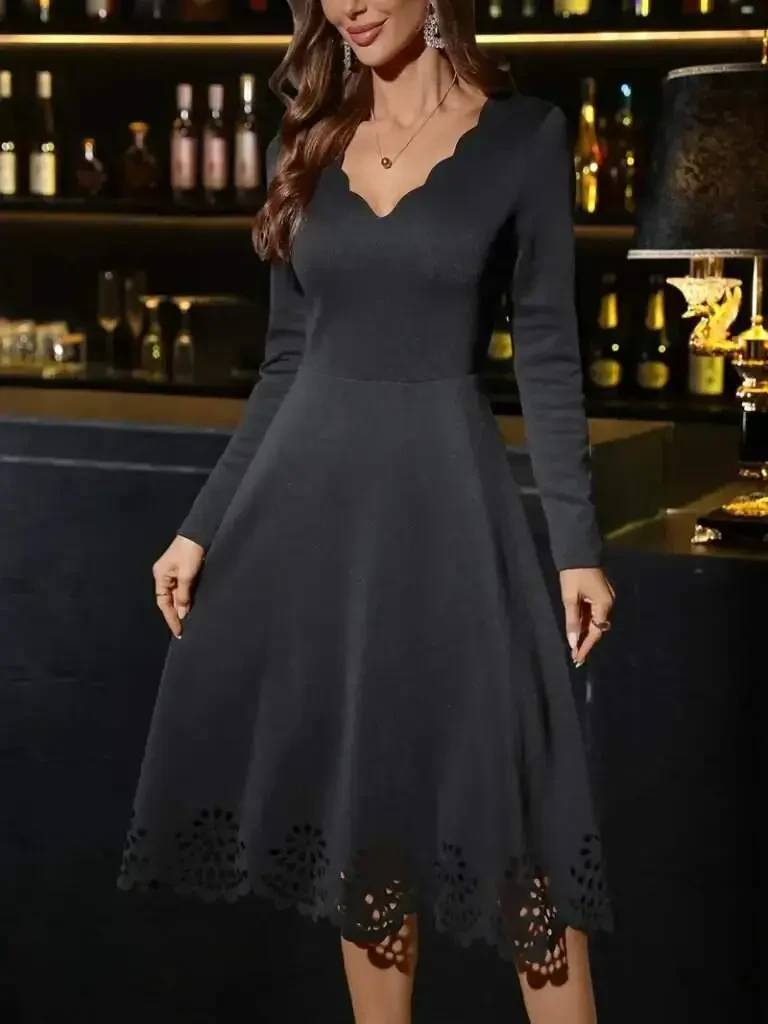 Experience elegance and comfort with the Women's Long Sleeve V-Neck Laser Cut Detailed Midi Imported Crepe Dress. This special design dress offers an elegant look with its imported crepe fabric, while its long sleeves and V-neck provide a modern appearance. Laser-cut details add a unique touch to the dress, and its midi length makes it an ideal choice for both daily wear and special occasions. With its fine craftsmanship and quality fabric, this dress offers long-lasting use and will be an indispensable part of your wardrobe. The model wears size M/38 and is 165 cm tall, weighs 55 kg, and has chest, waist, and hip measurements of 90 cm, 72 cm, and 100 cm, respectively. This dress is designed to fit every body type and allows you to look stylish without restricting your freedom of movement. The light and flowing structure of the crepe fabric provides comfortable wear throughout the day, while the laser-cut details add a sophisticated touch to the dress. The V-neck detail makes your neck look longer and more elegant, and you can easily wear it in cool weather thanks to its long sleeves. The midi length can be combined with both high heels and casual sandals, so you can easily adapt to different styles. This dress will allow you to reflect your style and attract attention in any environment. Whether you are attending a special invitation or dressing for a daily event, this dress will always make you look stylish and elegant. Take your style one step further with this special design dress that you should definitely have in your wardrobe.