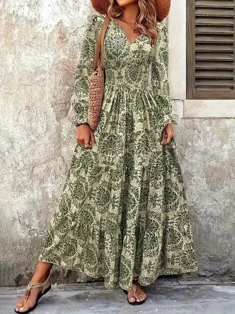 Women's Long Sleeve V-Neck Patterned Supreme Dress