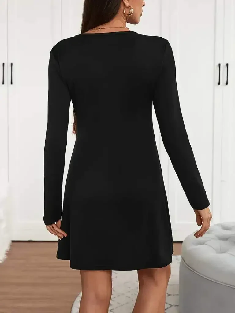 V-Neck Viscose Dress | Long Sleeve Short Dress Models