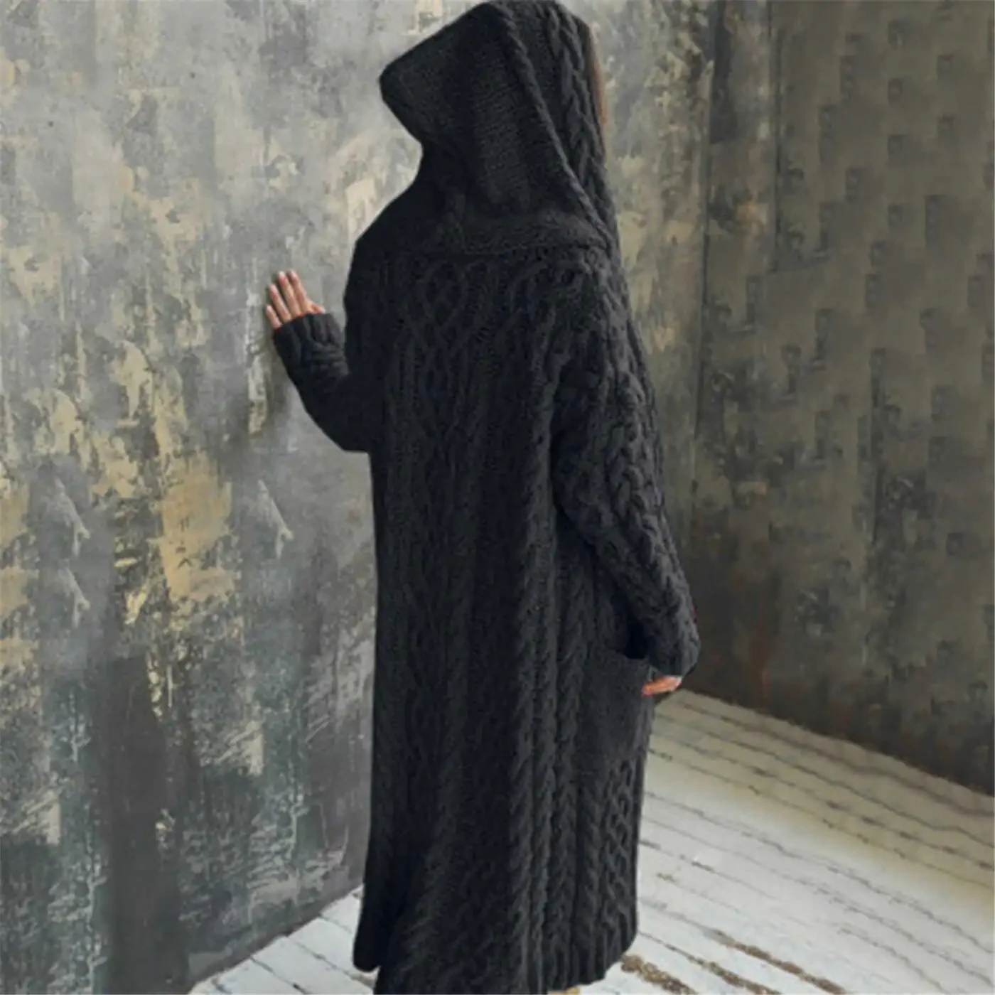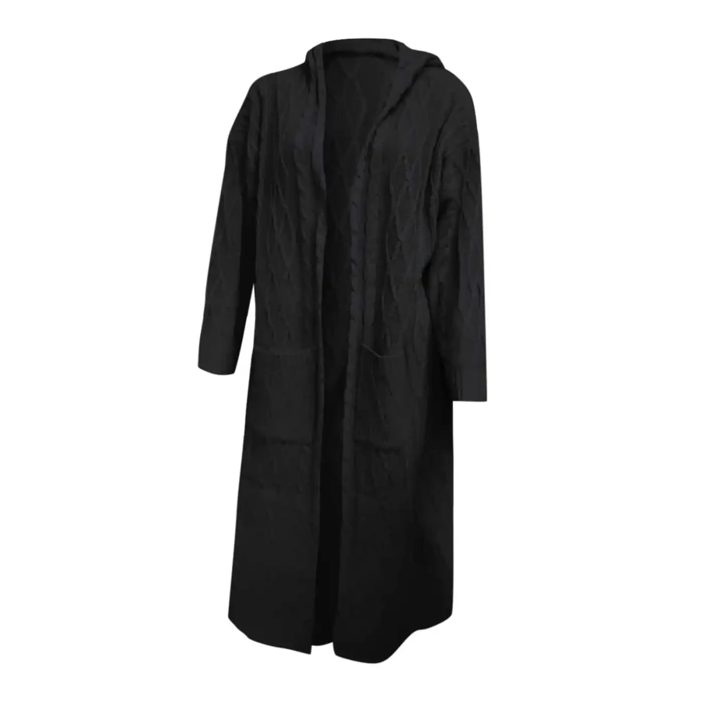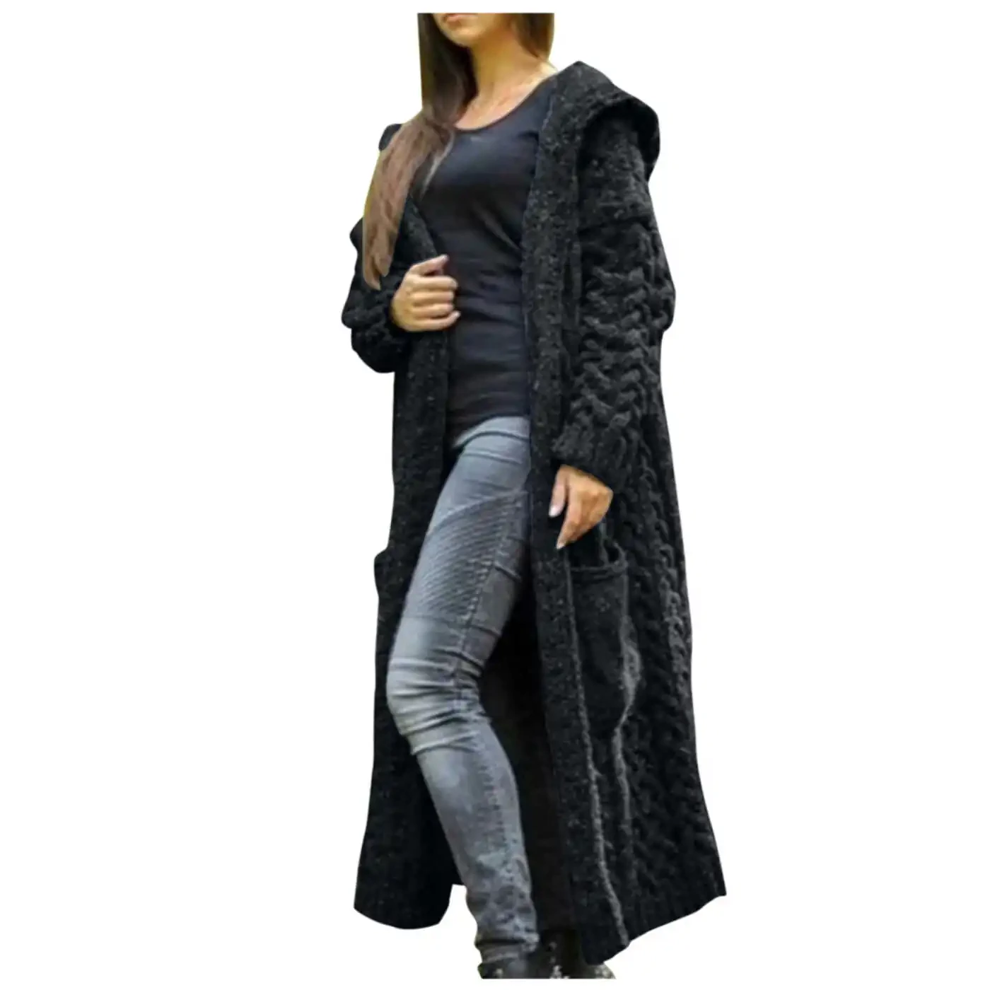 This stylish and comfortable long cardigan is a must-have for your wardrobe. Made from soft and warm knit, this cardigan is perfect for keeping you warm on chilly winter days. Its loose fit provides a comfortable fit for all body types, and its hood offers you extra warmth. Its pockets are perfect for keeping your hands warm or storing small items. You can combine this cardigan with jeans, dresses, or skirts to achieve a stylish and comfortable look.