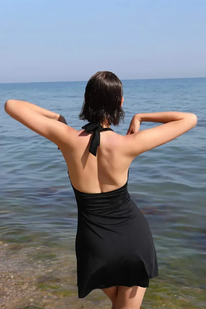 Elevate your beach style with this chic and comfortable red polka dot black dress swimsuit. The tie detail at the bust adds both style and support, while the 80% Polyester, 20% Elastane fabric construction ensures all-day comfort. Versatile enough to be worn as both a swimsuit and a dress, this piece will upgrade your beach wardrobe. The easy-to-wear halter-neck design and simple care instructions (hand wash and hang dry) make it a breeze to maintain. Turn heads at the beach or pool with this stylish and functional dress swimsuit, a must-have for your summer vacations.