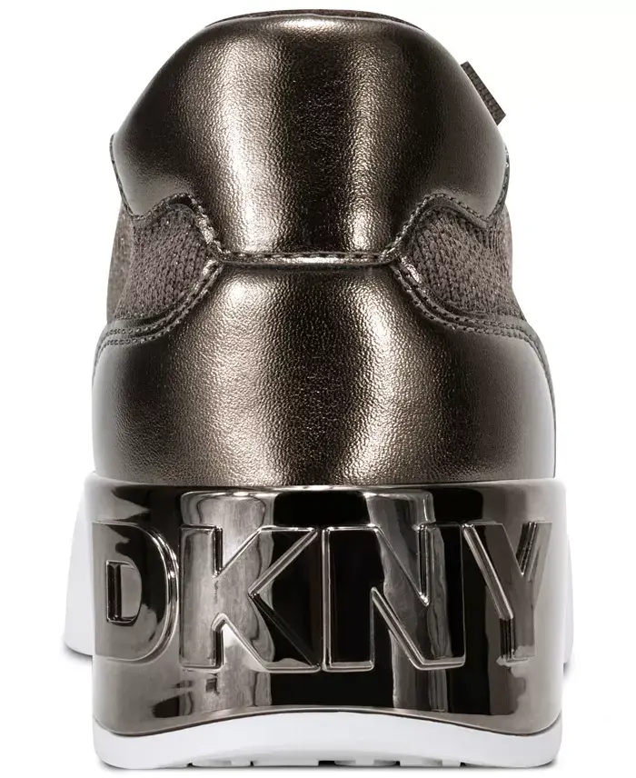DKNY adds signature style to a laced low-top look in the dimensional logo details and sporty appeal of the Mallory sneakers. Heel: 1-1/4" Almond toe Lace up Upper: manmade; lining: unlined; sole: rubber Spot clean Imported