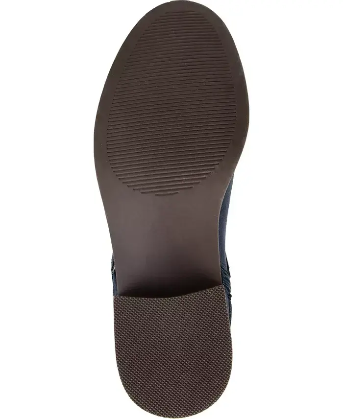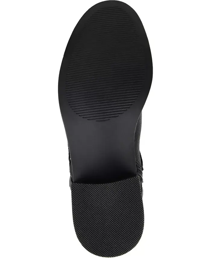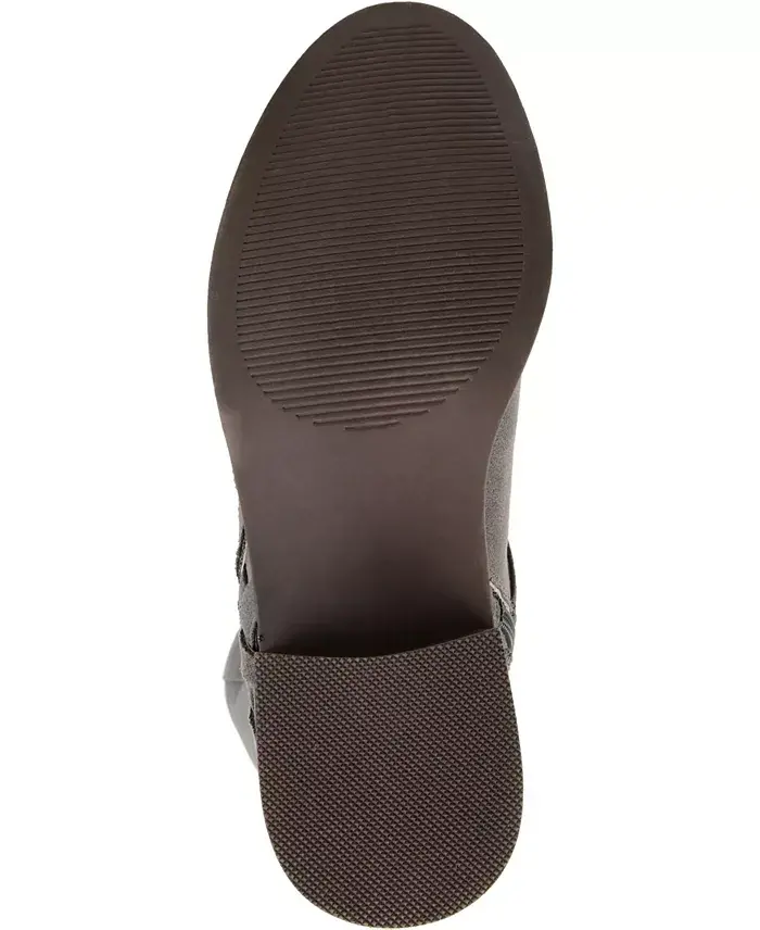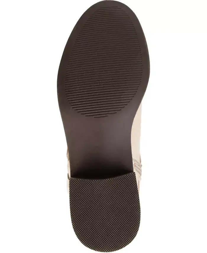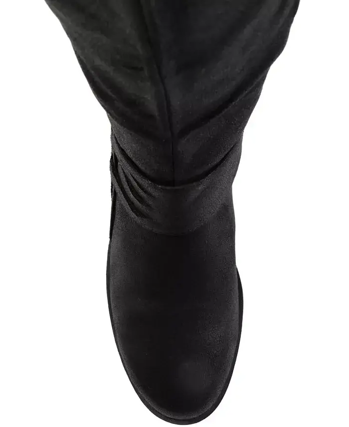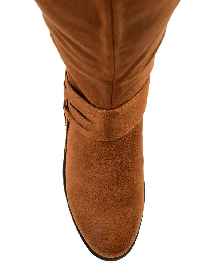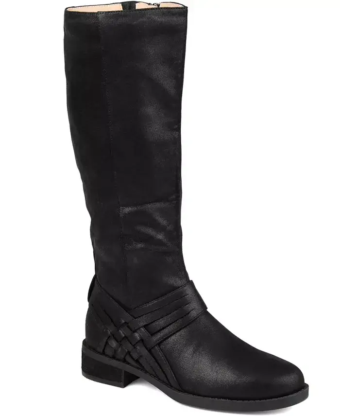 Create a beautiful winter look with the Meg wide calf boot by Journee Collection. This boot is a faux suede material with an intricate woven detail on the outside. The knee-high style and the round toe shape complete this charming design. These shoes are made with man-made materials A round toe is highlighted on this shoe Width- Medium Heel height- 1.25" Heel Type- Stacked Shaft Height- 13.5 Calf Circumference- 15.5 Foot entry- Inside Zip Calf Width - Wide Calf Faux Suede- Polyester and Polyurethane Spot Clean Imported