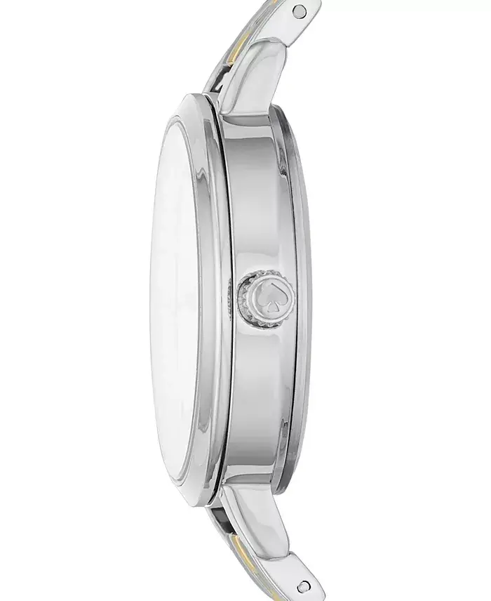 Carry elegance and grace on your wrist with the Women's Metro Two-Tone Stainless Steel Bracelet Watch from Kate Spade New York. This eye-catching watch is designed as the pearl of the Metro collection and is an ideal accessory for everyday use. The most striking feature of the watch is the gold-tone link details in the center of the silver-tone stainless steel bracelet. This two-tone design adds a sophisticated touch to the watch while allowing it to be easily combined with different outfits. The 30mm diameter round case offers both an elegant and eye-catching look. The white dial increases the readability of the watch and highlights elegance with its minimalist design. The three-hand quartz movement allows you to keep track of time precisely. The adjustable length of the bracelet (175mm) provides comfortable use by adapting to different wrist sizes. The folding clasp ensures that the watch stays securely on your wrist. Water resistance (30 meters) provides protection against water splashes in daily use. This stylish watch comes in a special box and can be a perfect gift option for your loved ones. You can benefit from the free watch adjustment service in your purchases from Modazone stores. You can register for the Modazone WorryNoMore® Jewelry & Watch Protection program within 30 days after purchasing your product. This program ensures that your watch is safe. An imported product, the Women's Metro Two-Tone Stainless Steel Bracelet Watch cannot be shipped to Alaska, American Samoa, Guam, Hawaii, Marshall Islands, Pacific Islands, Palau, Puerto Rico, U.S. Virgin Islands, P.O. boxes or APOs. Complete your style with this unique watch and let your elegance speak for itself at every moment. Produced with Kate Spade New York quality, this watch will be an accessory that you will enjoy using for many years. This watch, which will complement your daily elegance and accompany your special moments, is also an unforgettable gift option for your loved ones. Designed with attention to every detail, the Women's Metro Two-Tone Stainless Steel Bracelet Watch appeals to all tastes by offering both modern and classic styles together. You can attract attention in any environment and reflect your style with this stylish accessory you carry on your wrist. This watch, which is a timeless design that will not go out of fashion even after years, will be an indispensable part of your wardrobe. This watch, produced with Kate Spade New York's unique design approach, is an ideal choice for women who seek elegance and quality together.