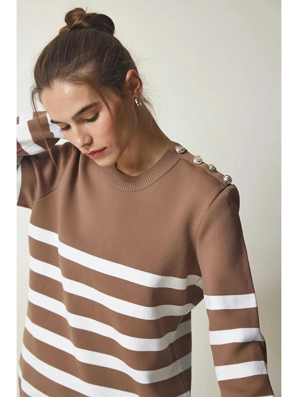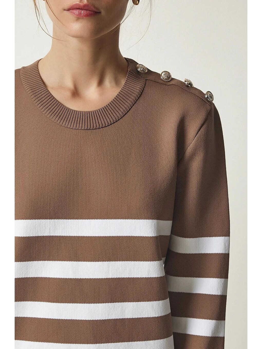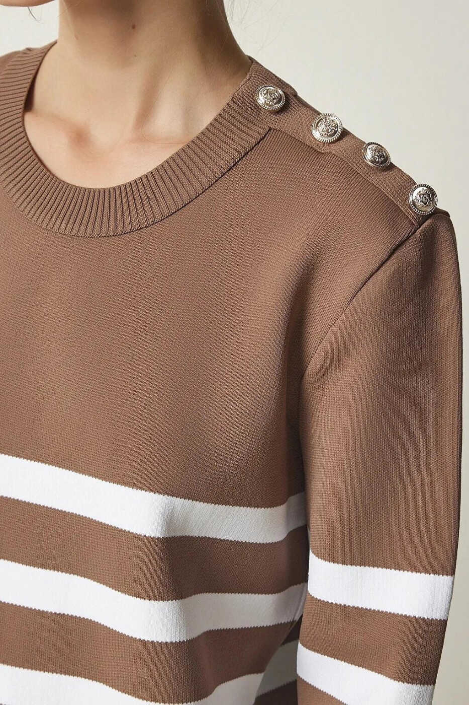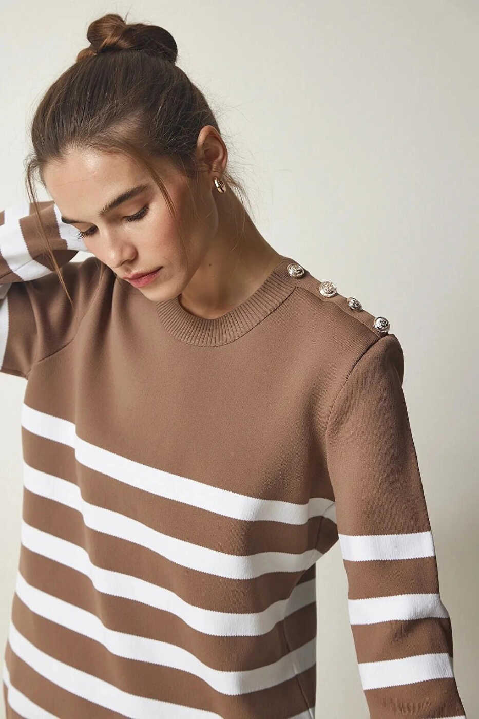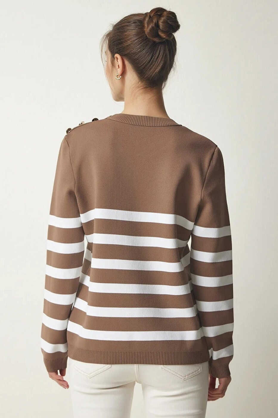 Embrace style and comfort with the Vison White Striped Shoulder Button Detailed Bicycle Collar Sweater. This sweater, which envelops you with its soft and warm texture, will allow you to achieve a stylish and comfortable look in your daily life. The shoulder button detail creates a unique style, while the bicycle collar design adds elegance to your style.