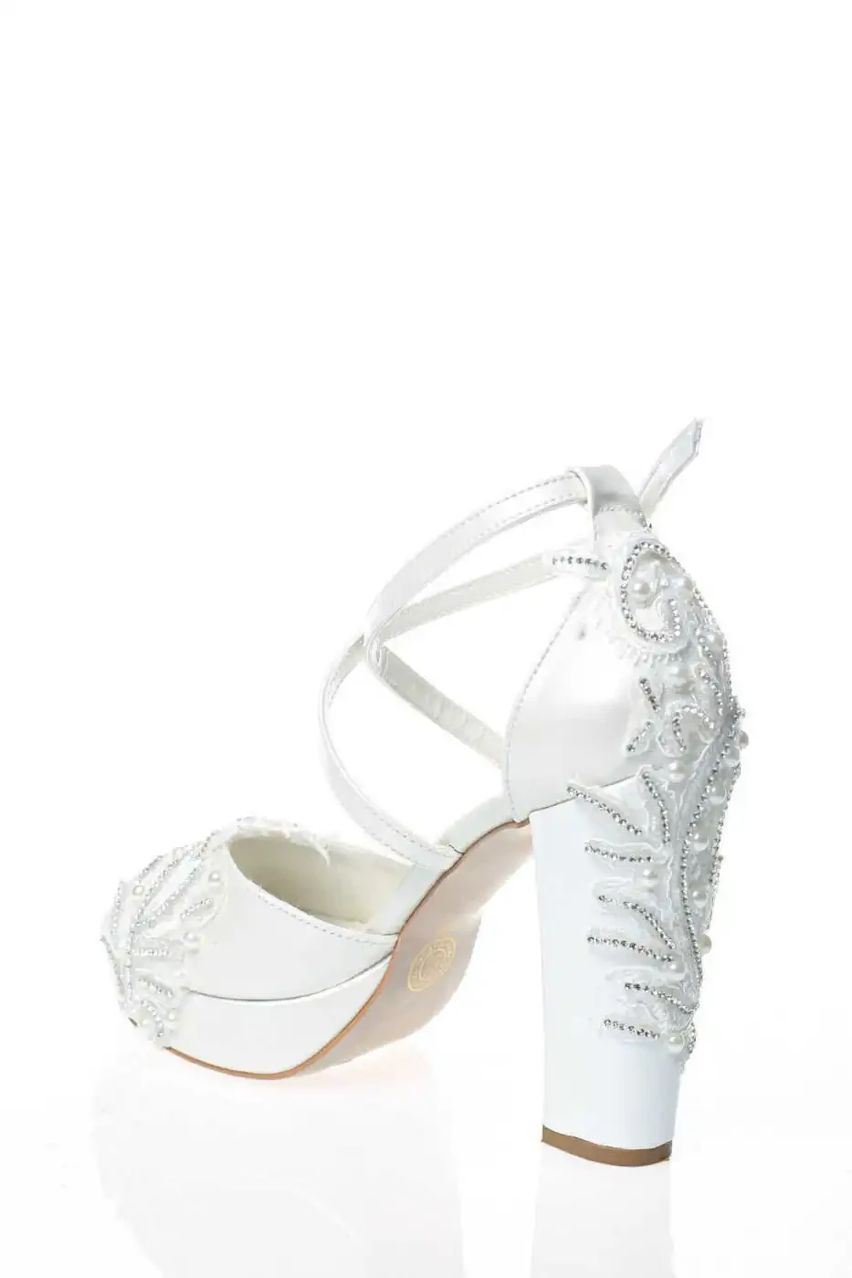 If you're looking for an elegant and captivating bridal shoe that complements your dream wedding dress perfectly, you've come to the right place! This shoe, meticulously crafted with mother-of-pearl stones, will make you feel like a radiant princess on your special day.