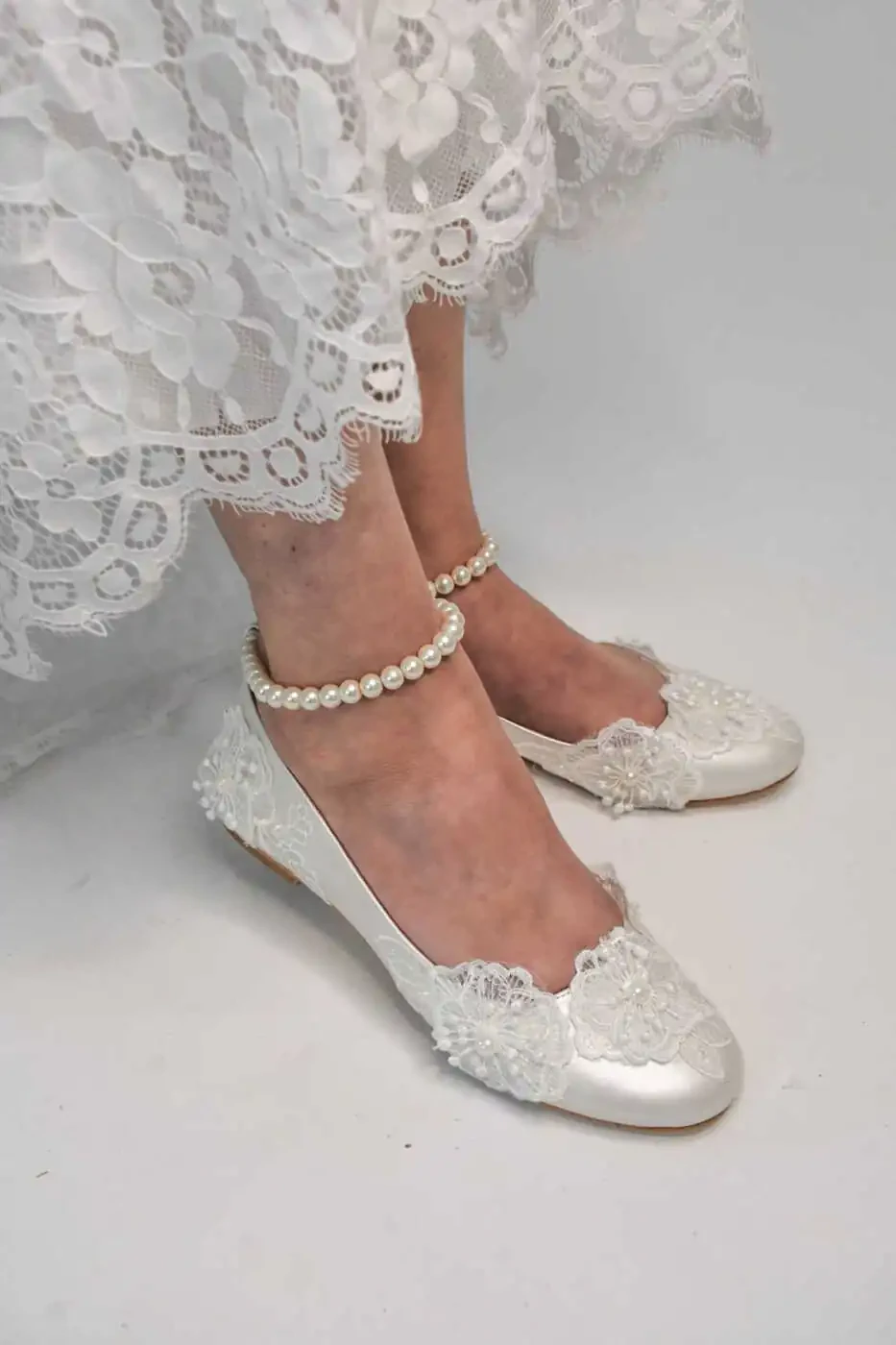 If you are looking for a shoe that will make you feel like a princess on your special day, the Women's Off-White Pearl Embroidered Bridal Ballerina is perfect for you! Place your order now and get a stunning look on your special day.