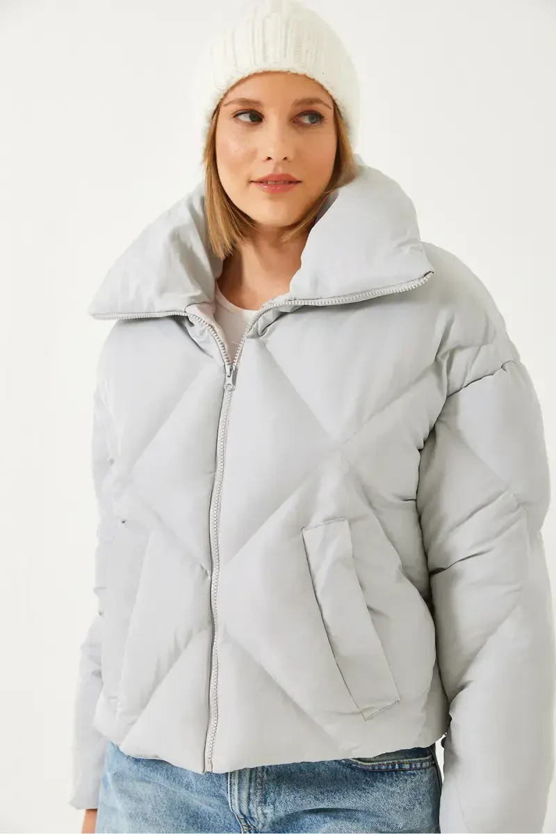 Bianco Lucci Women's Oversize Puffer Jacket - Grey is a unique option that combines elegance and comfort. This jacket is a timeless piece that should be in every modern woman's wardrobe. Thanks to its zippered closure, it is easy to put on and take off, offering practical use. Its plain design makes the jacket compatible with all kinds of combinations, while promising a simple and stylish look. Whether for your daily activities or special occasions, this jacket is always ready to accompany you. The oversize fit offers freedom of movement, while its wide cut creates a modern silhouette. In this way, you will look stylish and feel comfortable all day long. As part of the basic collection, this jacket is a candidate to become an indispensable part of your wardrobe with its timeless design. Its sleeveless arm length gives a feeling of coolness, especially in spring and summer, while its double-pocketed structure offers functionality. Pockets allow you to safely carry your phone, keys or other small items. Made of high-quality materials, this jacket offers long-lasting use when properly cared for according to washing instructions. In this way, you can enjoy wearing your jacket for many years. This jacket, which has a classic style, appeals to a wide range of users of all ages. Whether you are a young student or a professional business woman, this jacket will complement your style and give you confidence. The filling technique of the puffer jacket ensures that it keeps you warm despite being light. This feature increases the comfort of the jacket, especially in cold weather. Its grey color makes the jacket easy to combine and matches all kinds of clothes. This jacket is not just a garment, but also a style statement. Produced with Bianco Lucci quality, this jacket is an ideal choice for women who are looking for elegance and comfort together. Don't miss this oversize puffer jacket to renew your wardrobe and add a modern touch to your style. This jacket, which will accompany you in both daily use and special moments, will complete your style and always make you look stylish.