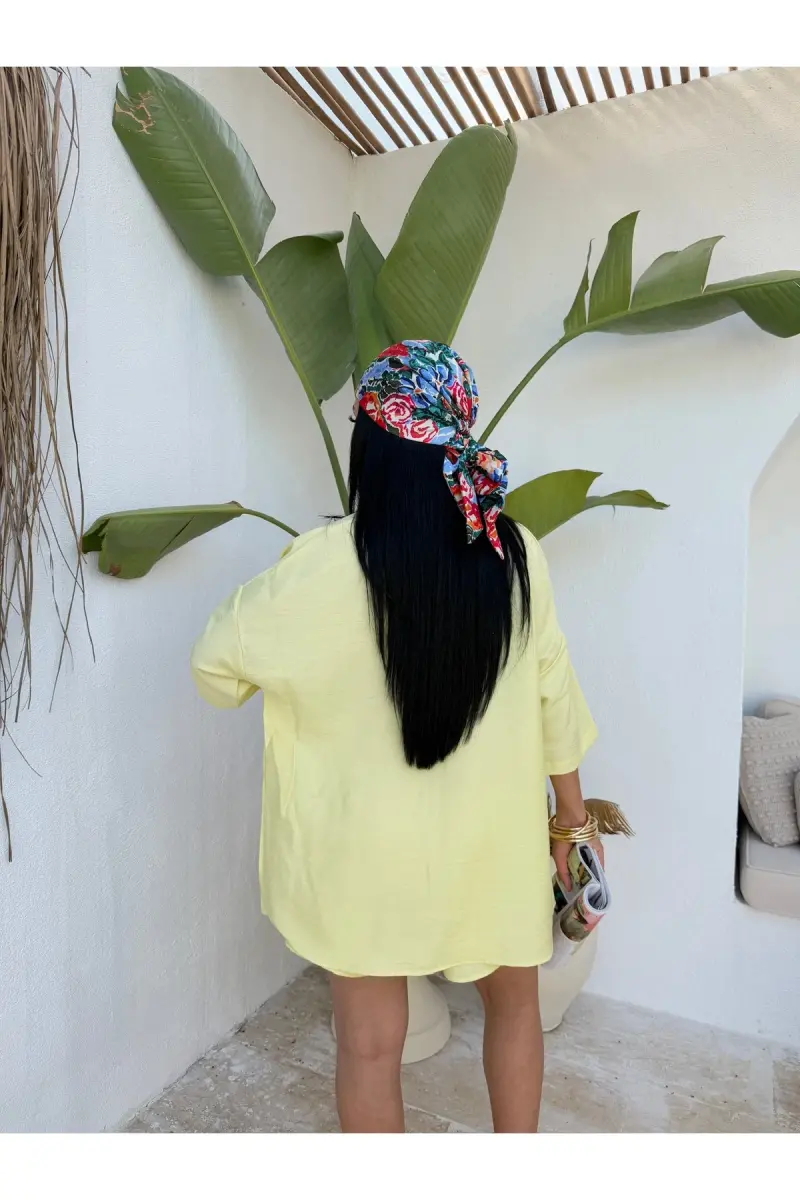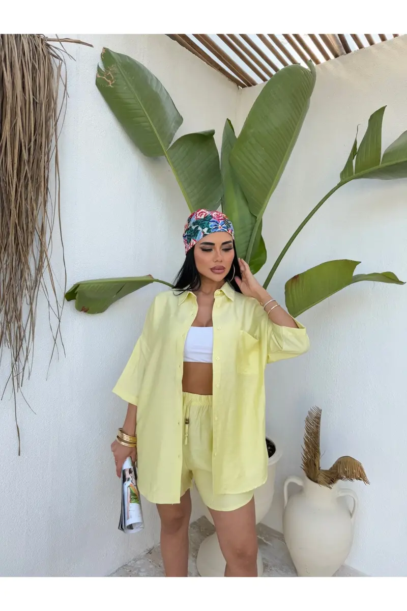 Women's Oversize Shirt Shorts Set is a perfect option for women looking for a modern and comfortable style. The vitality of the yellow color and the comfort of the oversize cut come together in this set, offering both a stylish and comfortable look. Ideal for daily use, this set can also be easily preferred for special events. Thanks to its high-quality fabric, it offers long-lasting use, while allowing your skin to breathe and feel comfortable all day long. The fact that the shirt and shorts can be combined separately allows you to create different styles with other pieces in your wardrobe. Whether you catch a casual style with sneakers or get a more elegant look with sandals. This set helps you to highlight your style in every situation. You will love this set, which will be indispensable for summer months with the energy of yellow color. This set, which offers both comfort and elegance together, is a candidate to be one of the most favorite pieces of your wardrobe. While its oversize cut does not restrict your freedom of movement, you will attract attention with its stylish design. This set is not just a piece of clothing, but also an expression of a lifestyle. It will be with you whenever you want to feel special and free. It keeps you cool and comfortable on hot summer days, while also allowing you to reflect your style. Enjoy being stylish and comfortable at all times with the Women's Oversize Shirt Shorts Set. This set will be an indispensable part of your wardrobe and will always inspire you.
