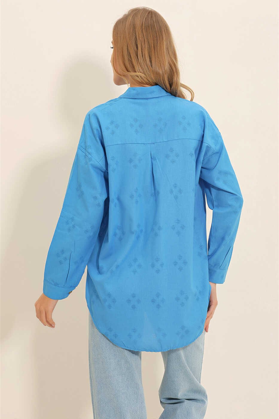 This oversized linen shirt combines comfort and style, making it a must-have for summer. The lightweight and breathable linen fabric provides all-day comfort, while its blue patterned design will complete your style.