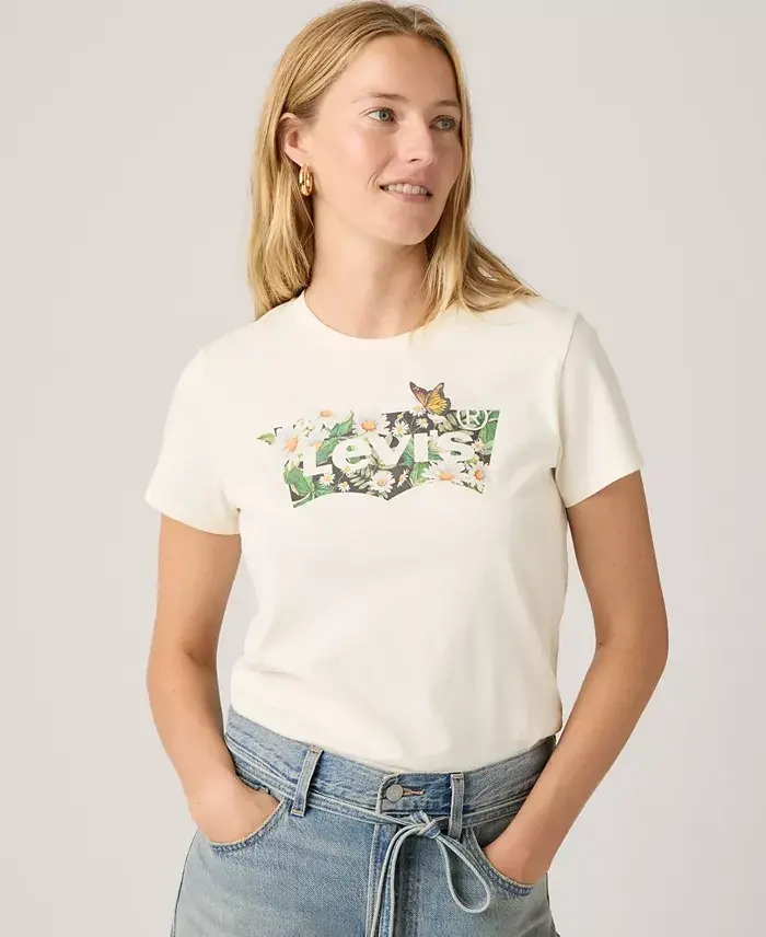 Breathable cotton keeps you comfortable along with the classic fit of this Levi's perfect T-shirt Hits at hip Pull-on closure Crew neck Graphic print at front 100% cotton Machine wash Imported