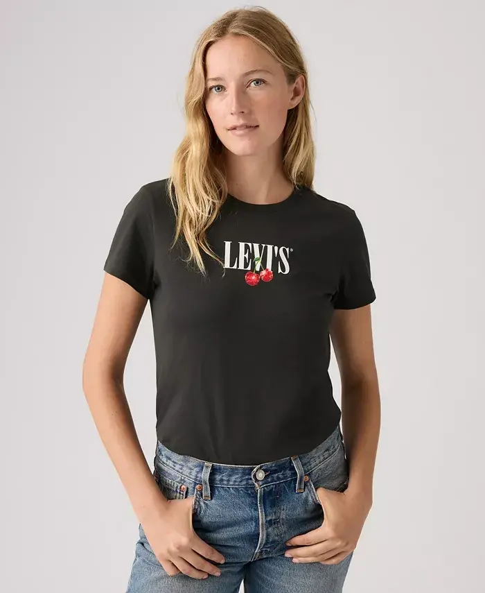 Breathable cotton keeps you comfortable along with the classic fit of this Levi's perfect T-Shirt Hits at hip Pull-on closure Crewneck Graphic print at front 100% cotton Machine wash Imported