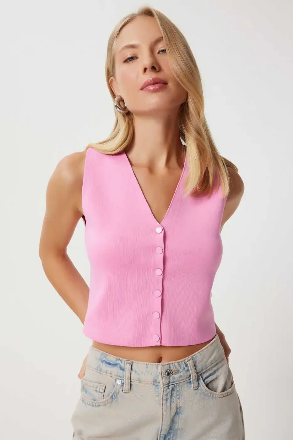Meet the Women's Pink V-Neck Knitted Vest PF00087, which will add a new dimension to your style and comfort! This elegant and modern vest will be with you at every moment, from your daily life to special occasions. This vest, which stands out with the softness of its pink color and the elegance of its V-neck, is both extremely comfortable and durable thanks to its 100% polyamide structure. Thanks to its Lycra fabric, it fits perfectly by gracefully hugging your body lines. Its snap closure offers practical use. Don't miss this product, offered at a campaign price with over 100 in stock! It will be delivered to you quickly and reliably with Trendyol's guarantee. You can also return the product free of charge within 15 days. Please keep in mind that there may be slight variations in color due to differences in lighting during studio shoots. The model's measurements are as follows: Height: 1.73 cm, Bust: 79 cm, Waist: 60 cm, Hips: 90 cm. This information will help you choose the right size. You can order a maximum of 10 pieces. Orders exceeding 10 pieces may be canceled by Trendyol. Different limits may apply to corporate orders. Make this amazing vest an indispensable part of your wardrobe and bring a new breath to your style!