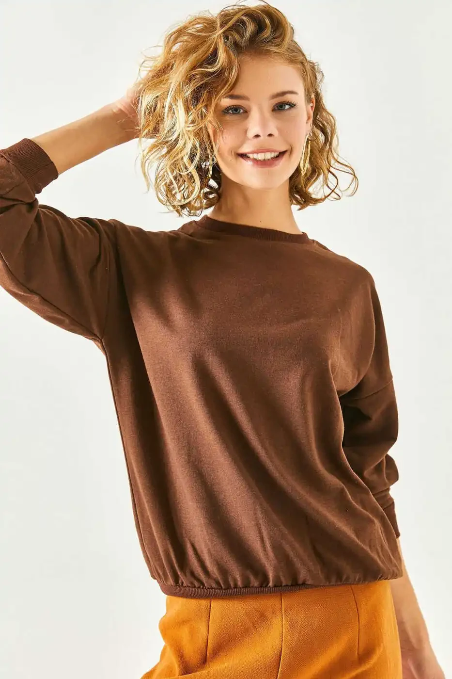 **Women's Plain Coffee Basic Soft Textured Oversized Sweatshirt SWT-19000457**