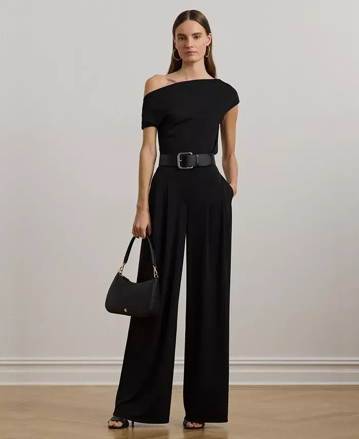 Pleated, Wide Leg, Stretch Jersey Women's Trousers - Comfortable and Stylish!