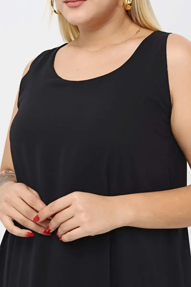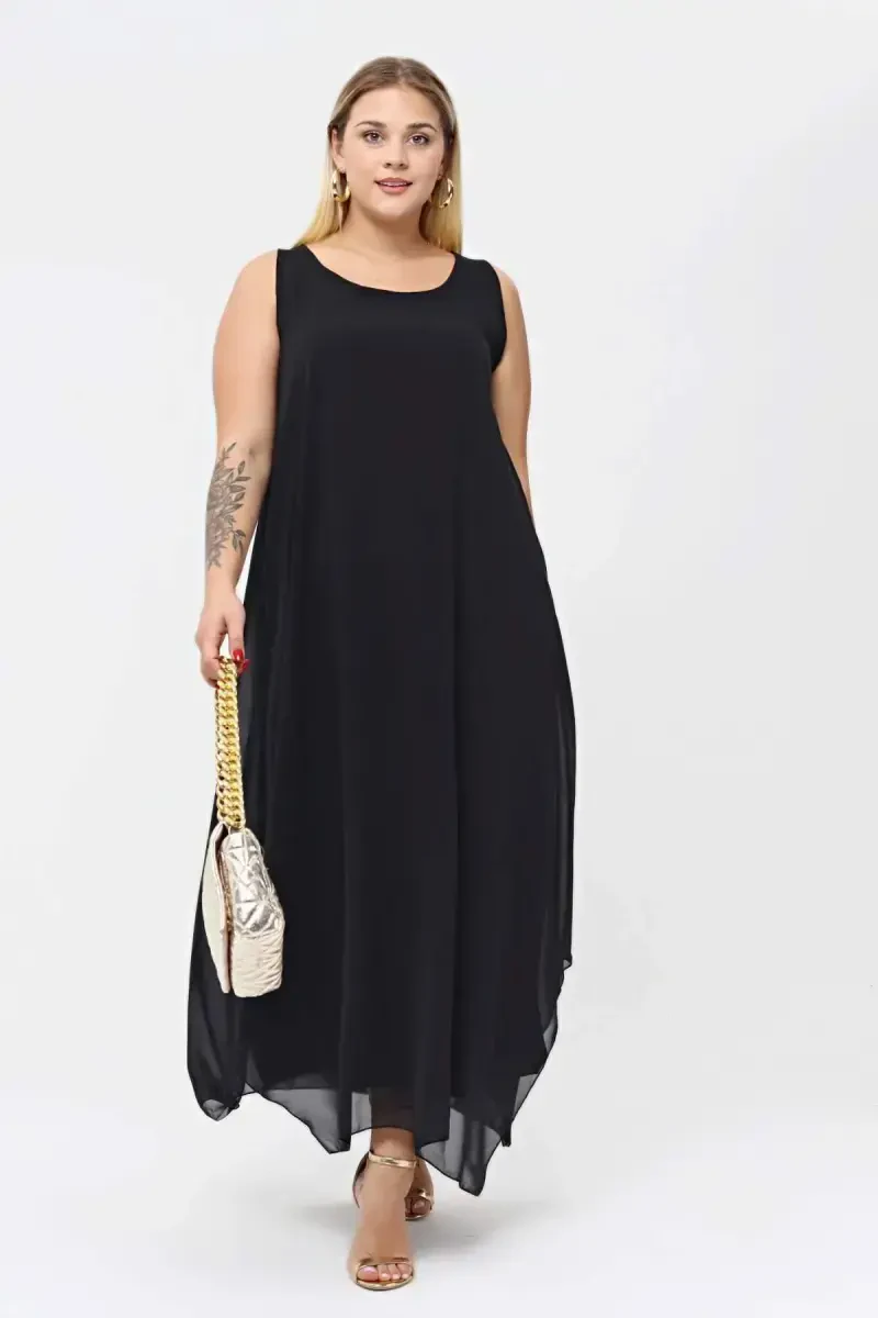 **Plus Size Women's Relaxed Chiffon Maxi Dress KL7019 Black**## Product Features* Dress Length: 140 cm* Fabric Type: Chiffon* Fabric Content: 100% Polyester* Relaxed Fit* Chic and Elegant Design**Model Measurements:*** Height: 1.75 cm* Weight: 75 kg* Size: 44-46* Bust: 106 cm* Waist: 87 cm* Hips: 113 cm**Dress Size Chart:**[Dress Size Chart Here]**Washing Instructions:*** Follow the washing instructions on the product label.**Styling Tips:*** Pair this chiffon dress with heels or sandals.* Add a belt to accentuate your waist.* Accessorize with jewelry to complete your look.Perfect for special occasions or everyday wear, this plus size maxi dress will not disappoint with its comfortable fit and quality fabric, making you look and feel your best.