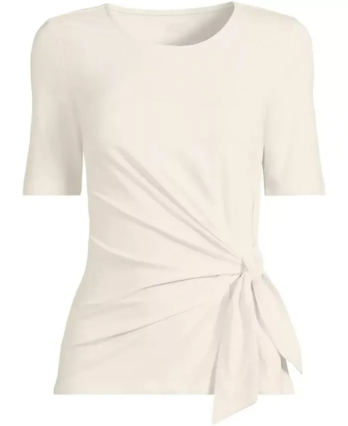 When it comes to comfort, classic t-shirts always rank at the top. But sometimes you need a little something extra to liven up your look. That's why we designed this beautiful Plus Size Lightweight Jersey Tie-Front Blouse for Women. This blouse perfectly combines comfort and style, making it an indispensable piece for your wardrobe. Ideal for everyday wear, this blouse will keep you comfortable all day long with its soft and breathable fabric. The tie detail on the front adds a feminine touch to the blouse while beautifully emphasizing your body shape. Whether you combine it with jeans or a skirt, this blouse will always help you create a stylish and comfortable look. Its lightweight structure keeps you cool in hot weather, while its fabric, made of 56% cotton, 38% modal, and 6% spandex blend, is both soft and durable. It is also machine washable for easy care. Suitable for all body types with its wide size options, this blouse is a must-have in your wardrobe.