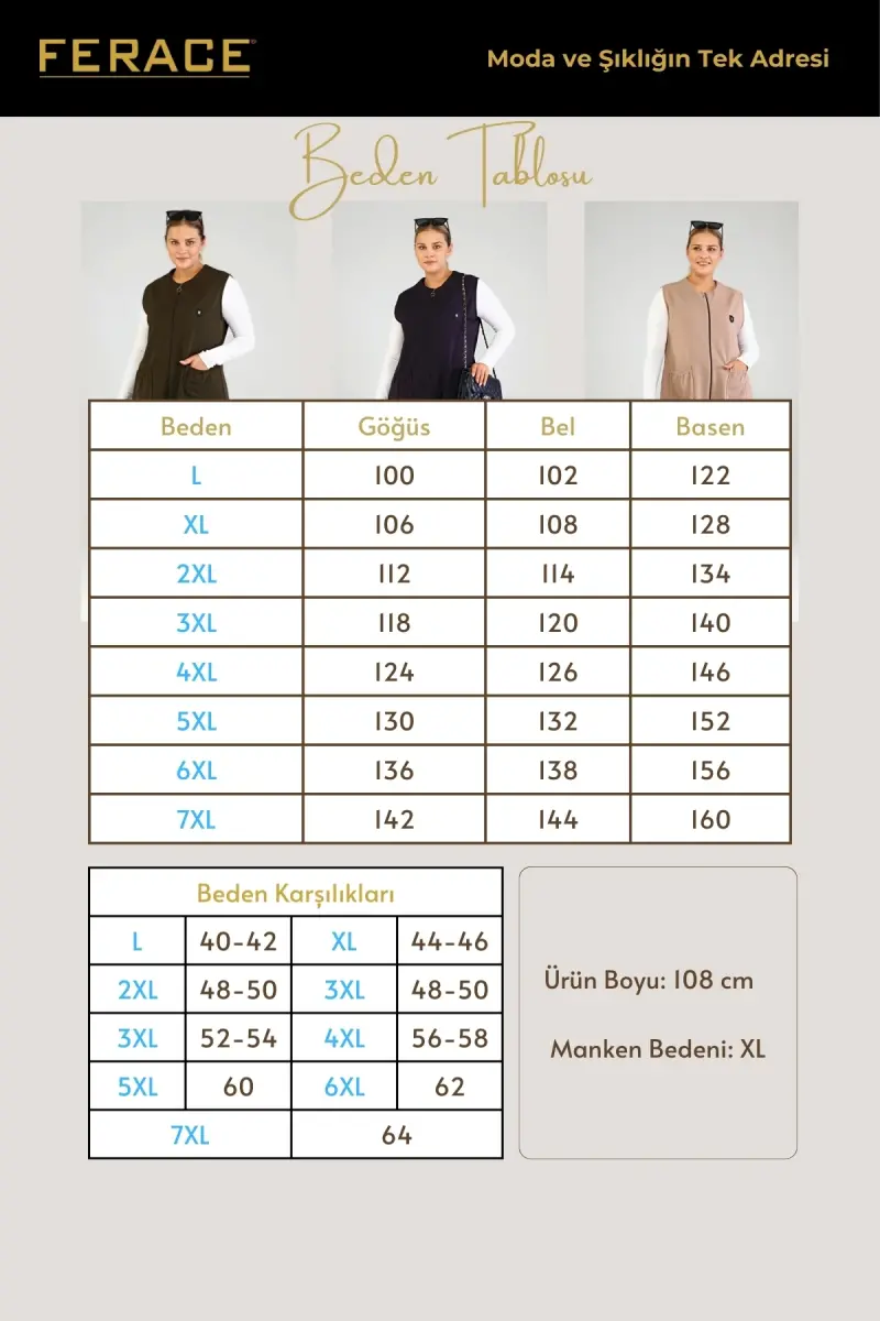 Combining style and comfort, the women's plus size long sleeveless zippered vest is a must-have for your wardrobe. This vest, which will keep you warm especially in cold weather and add elegance to your style, allows you to create different combinations.