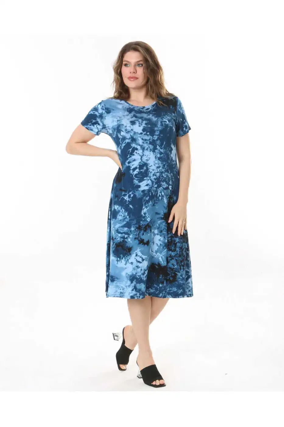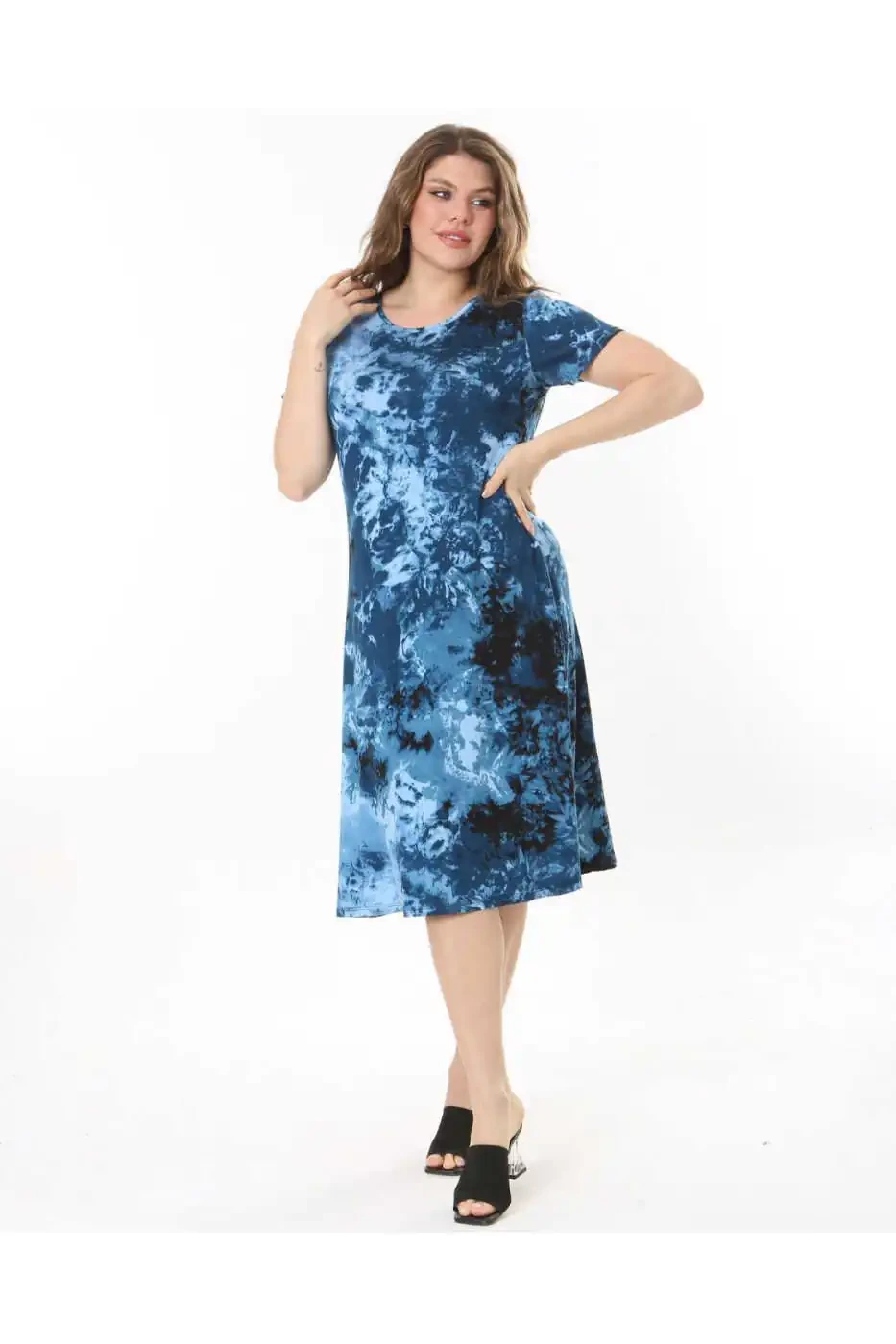 Designed to make you look elegant and stylish on special occasions, this midi dress is available in plus sizes to fit every body type. Its crew neck detail and short sleeves offer comfort and elegance. This dress, which complements your style with its patterned fabric, can be easily worn in every environment, from daily life to special invitations.