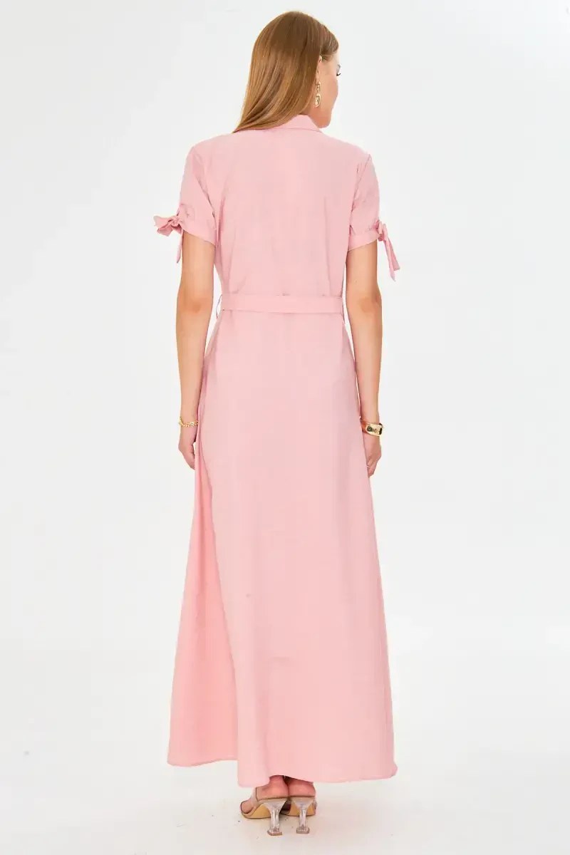 The Women's Powder Tie Sleeve Belted Shirt Dress ARM-23Y001004-Powder is an ARMONİKA product that combines elegance and comfort, attracting attention with its unique design. This elegant dress offers a feminine look with the warmth of its powder color, while creating a modern silhouette with its tie sleeve detail and belted waist. The shirt dress cut allows it to be easily preferred for both daily use and special occasions. The high-quality blend of viscose and polyester fabric offers a comfortable wearing experience throughout the day, while also helping you to exhibit a stylish stance. The dress's fluid fabric sits nicely on the body and does not restrict your freedom of movement. Whether you create a stylish combination with heels or achieve a more relaxed style with sandals, this dress will complement your style in any situation. The ARM-23Y001004-Powder model is a candidate to be one of the indispensable pieces of your wardrobe. Produced with ARMONİKA quality, this dress offers long-lasting use while ensuring you always look trendy with its fashionable design. The timeless elegance of the powder color makes this dress a versatile piece that you can wear in any season. The tie sleeve detail and belted waist design add a unique touch to the dress, while also elegantly emphasizing your body lines. Enjoy being both comfortable and stylish with this dress. The shirt dress model can be easily combined with different accessories as it combines both sporty and classic styles. Whether for daily use or special occasions, you can always be glamorous with this dress.