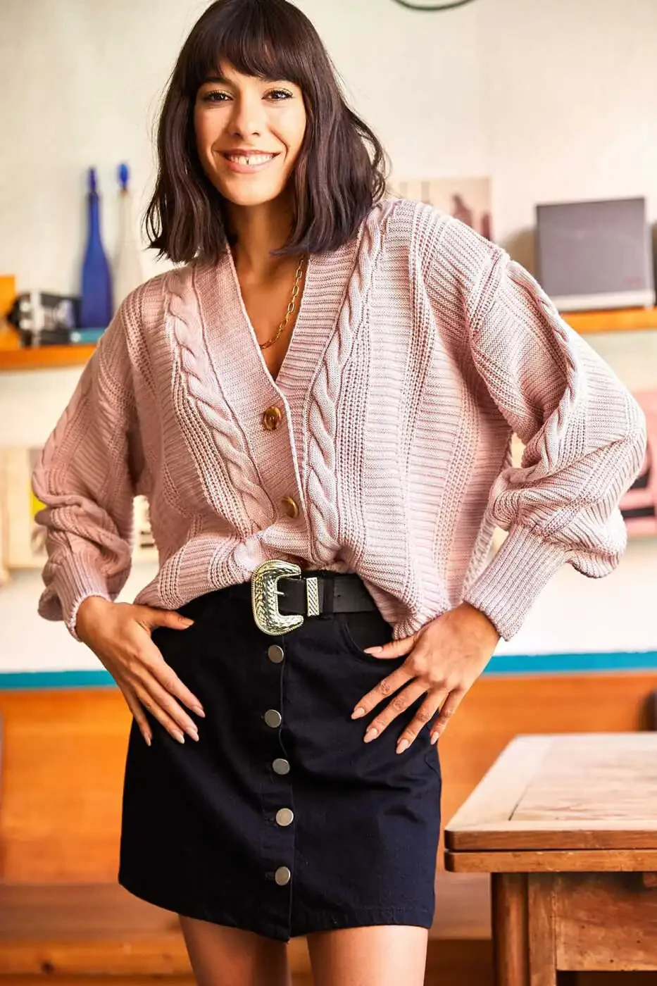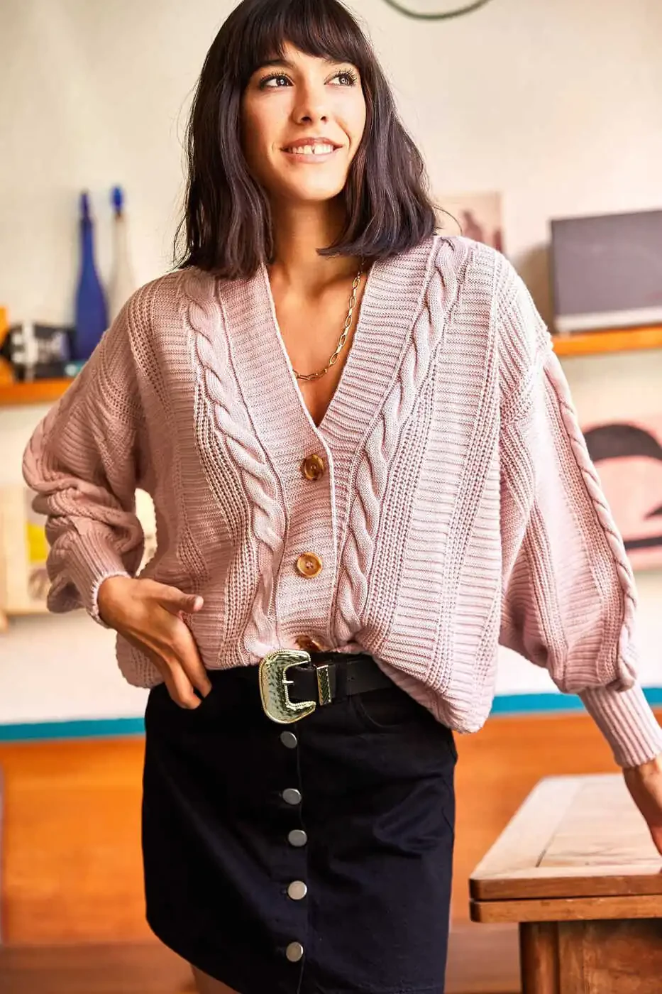 Add a touch of contemporary style to your wardrobe with this exquisite Women's Powder Thick Hair Braid Knit Cardigan (HRK-19000082). Shipped by Trendyol's trusted seller Olalook, this cardigan is a perfect choice for everyday wear.Crafted from acrylic material, this cardigan offers both comfort and sophistication. Its hair braid pattern adds a striking and trendy look, while the balloon sleeve design creates an on-trend silhouette. A V-neckline provides an elegant neckline, and the long-sleeved construction offers ample coverage during transitional seasons.Button closure allows for easy wearability, and the relaxed fit ensures freedom of movement. Its slim fit gently drapes around your curves, giving you a chic silhouette. The regular length and thick construction ensure comfortable wear, while its versatile design caters to all age groups.Moreover, this cardigan comes with the convenience of a 15-day free return policy. You can order up to 10 pieces, and Trendyol reserves the right to cancel orders exceeding 10 units. This limit does not apply to corporate orders.