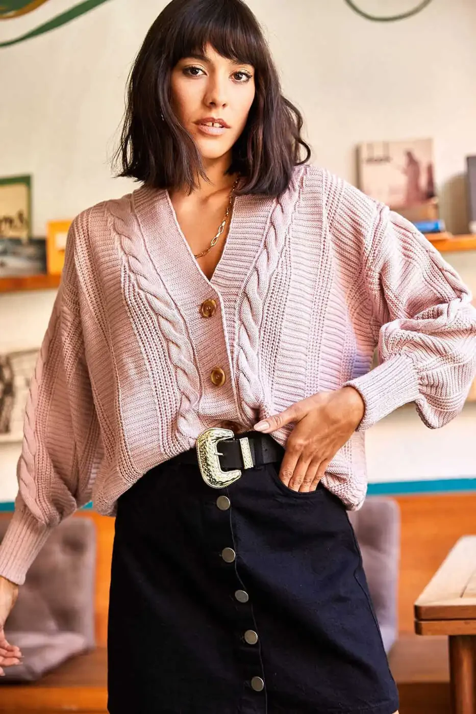 Women's Powder Thick Hair Braid Knit Cardigan: Comfort and Style Combined