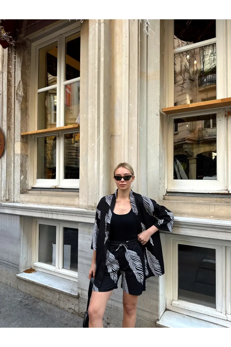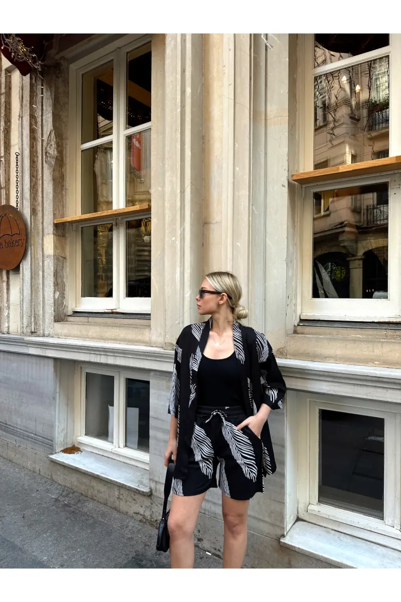 The Women's Printed Off-Shoulder Short Kimono Set - black gray is a stylish and comfortable option that reflects the unique style of the modern woman. This special design set draws attention with its off-shoulder detail and kimono-style top, while offering all-day comfort with its comfortable shorts. The harmony of black and gray colors gives the set a sophisticated look and allows you to create different combinations. You can choose this set for daily use or special occasions, and it will be an indispensable part of your wardrobe. The kimono-style top piece leaves a pleasant feeling on you thanks to its light and flowing fabric. The off-shoulder detail elegantly reveals your shoulders, while the comfortable cut of the shorts does not restrict your freedom of movement. The print on the set adds a unique and modern touch, highlighting your style. The elastic waistband on the shorts offers comfortable use all day long. This set not only makes you look stylish but also makes you feel good. You can create your own style by combining it with different accessories and shoes. For example, you can achieve a casual look with sandals, while you can create a more stylish combination with high heels. The fabric of the set is easy to iron and wrinkle-free, which saves you time. In addition, thanks to its breathable fabric, it does not cause sweating even in hot weather. The Women's Printed Off-Shoulder Short Kimono Set - black gray has a design that will appeal to stylish women. It is an ideal choice for those who want to be both stylish and comfortable. By wearing this set, you can attract attention in any environment and increase your self-confidence. The high-quality fabric and careful workmanship of the product offer long-lasting use. This set is not just a piece of clothing, but also an expression of a lifestyle. Choose the Women's Printed Off-Shoulder Short Kimono Set - black gray to feel special and reflect your style!