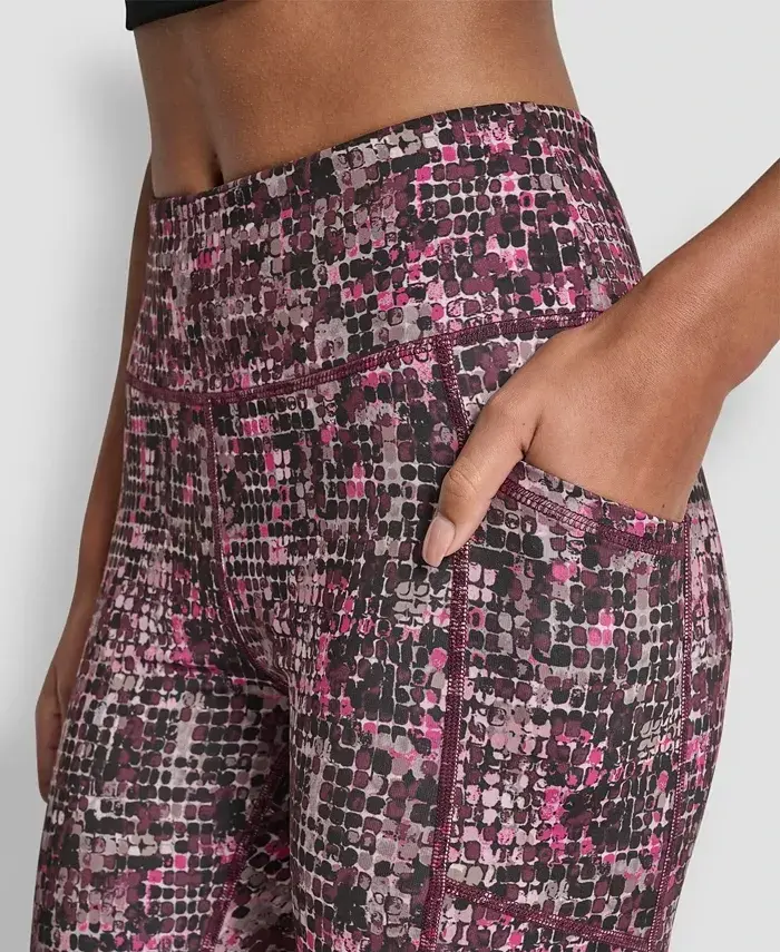 Renew your workout roster with these printed tights from DKNY Sport. Approx. inseam: 24-3/4" Regular fit INSPIRED FOR: everyday wear Pulls on; side pockets; logo at back 77% polyester, 23% elastane spandex Machine wash Imported