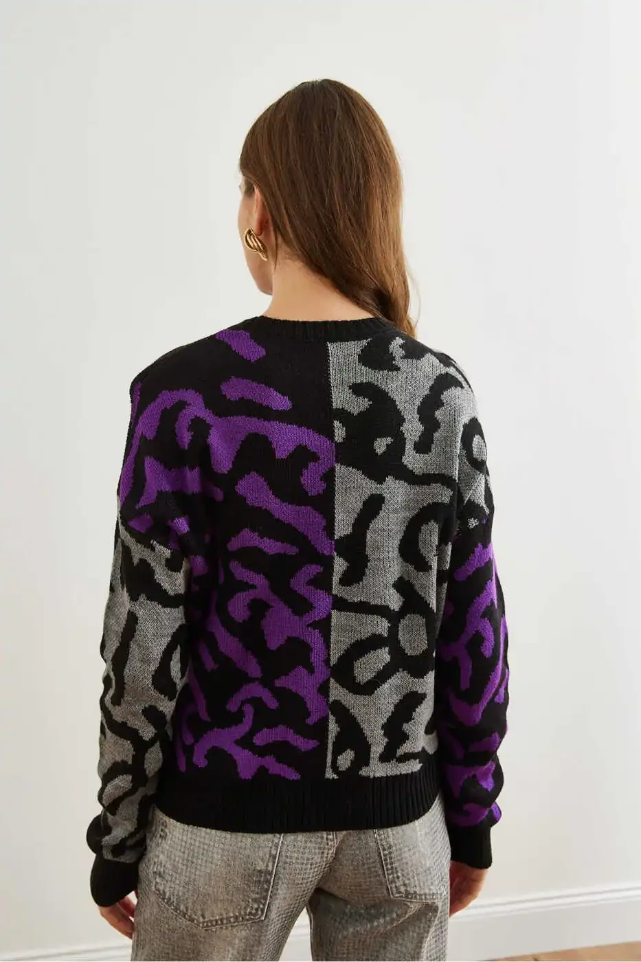 For women seeking a chic and eye-catching style, look no further than our **Women's Purple Leopard Block Knit Sweater KZK-19000832**. This exquisite sweater is sure to steal your heart with its captivating purple hue and trendy leopard patterns.Crafted from premium-quality 100% acrylic fabric, this sweater offers both softness and warmth. Its relaxed block design ensures a flattering fit for all body types, effortlessly elevating your style.**Features:*** Soft and warming 100% acrylic fabric* Eye-catching purple color and fashionable leopard patterns* Relaxed block design* Machine washable for easy careWith over 50 items in stock, you can order up to 10 units of this coveted sweater. Trendyol has set this limit to ensure you have ample stock for your needs. Our product also comes with a hassle-free 15-day free return policy. If for any reason you're not satisfied, you can return the item without any worries.Take your style to the next level and order the **Women's Purple Leopard Block Knit Sweater KZK-19000832** today! Treat yourself or a loved one to a chic and comfortable gift.